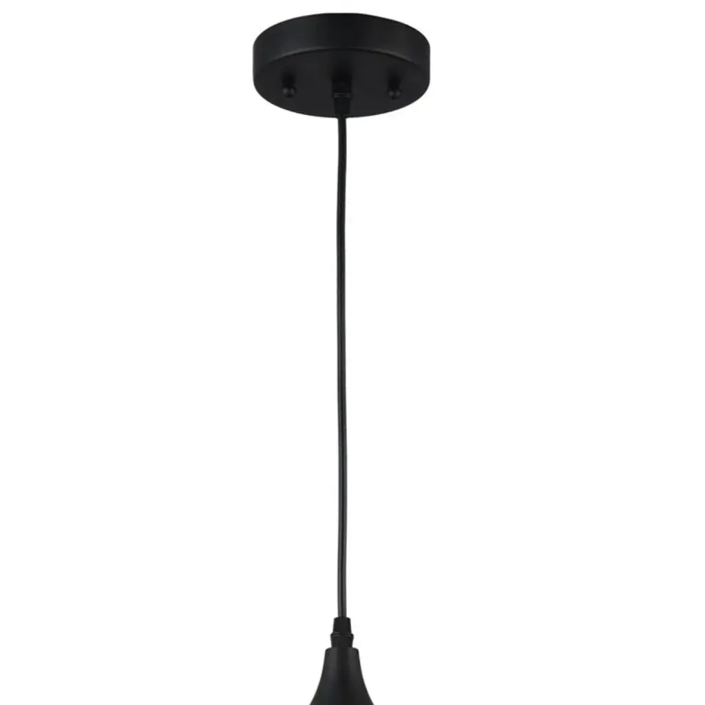 Bring a refined industrial edge to your interior with the Walter Ceiling Pendant. Crafted from durable steel in a bold matt black finish, this minimalist fixture features a rounded shade that directs focused downlight to your space. Ideal for kitchens, dining areas, lofts, or modern workspaces, its retro-inspired profile adds both character and clarity to your room. The extended 96" wire length allows for flexible hanging height adjustments to suit any ceiling. Key Features: Industrial-style pendant with classic matte black steel finish Clean rounded shade offers a focused downward glow Ideal for transitional, urban, or loft-style interiors Uses (1) 100W max E26 Type A bulb (not included); wall switch controlled Dimensions: 7.5" H x 6.7" W | Includes 96" cord | Net weight: 1.28 lbs