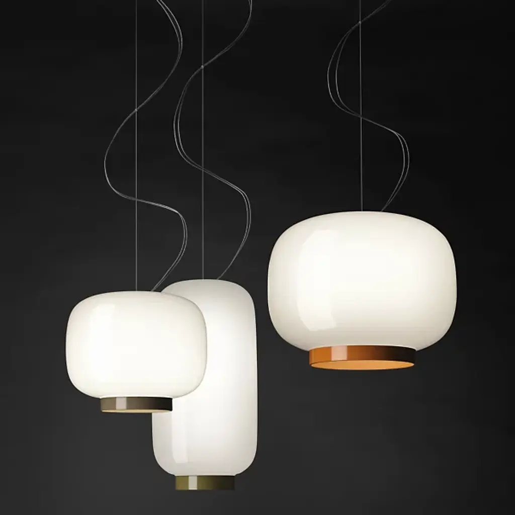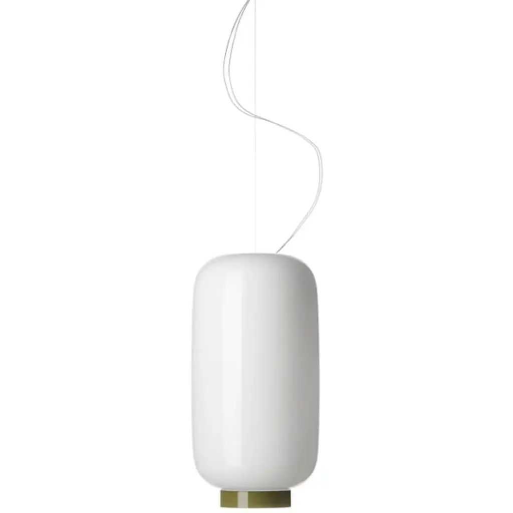 Directly inspired by the form of Japanese paper lanterns, Foscarini Chouchin 2 Reverse Pendant translates the familiar warmth and comforting illumination in to a modern glass form. Referring to the style of the original Chouchin by Ionna Vautrin, the colors are simply reversed, replacing the majority of the tall shade with a soft white finish while placing the color at the base. The ring at the bottom emits the same down light, but is now tinted with a dark green that nicely contrasts with the perimeter of diffused light above.