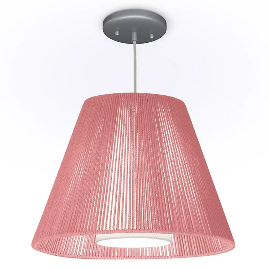 The Christina Pendant from Seascape Lamps balances an open, layered structure with fine details. The design is made in California, and suspends from a central cord, its conical frame wrapped in vertical bands of cotton yarn that add rustic texture. A cylindrical diffuser inside surrounds the lamp, softening efficient illumination into a steady glow. As light passes through the layered surfaces, it spreads evenly outward and casts subtle warmth through the yarn, uniting simple geometry with fine artisanal materials.
