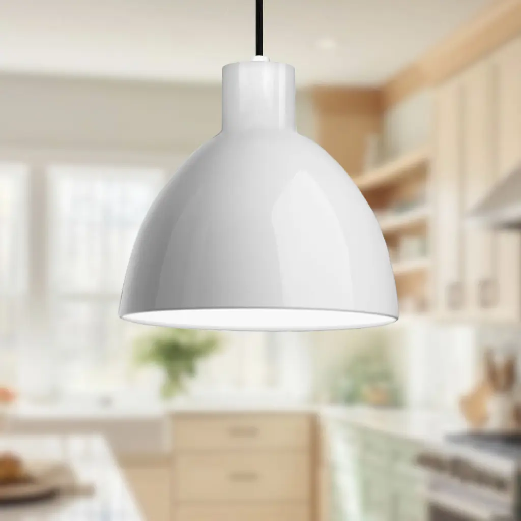 Combining new LED lighting technology and a classic silhouette, the Chroma pendants thrive in both contemporary and transitional interiors. Handsome cloth covered cable suspends the dome shade and provides a chic contrast to the plated finishes. Various monochromatic options abound for the fixture exterior while the interior remains white for reflectance.