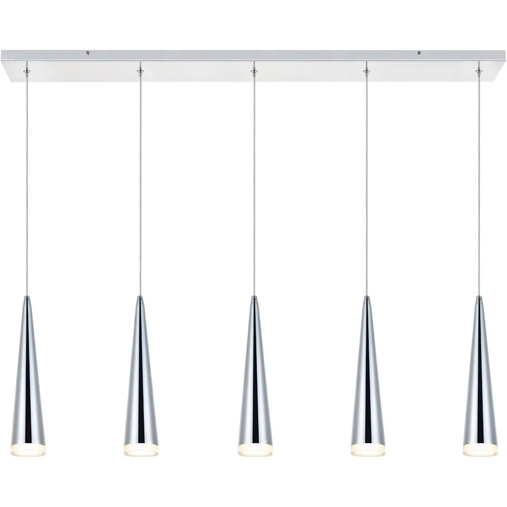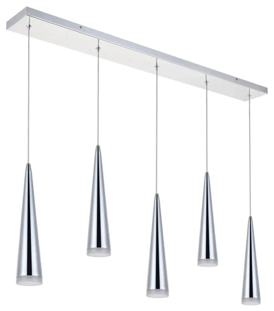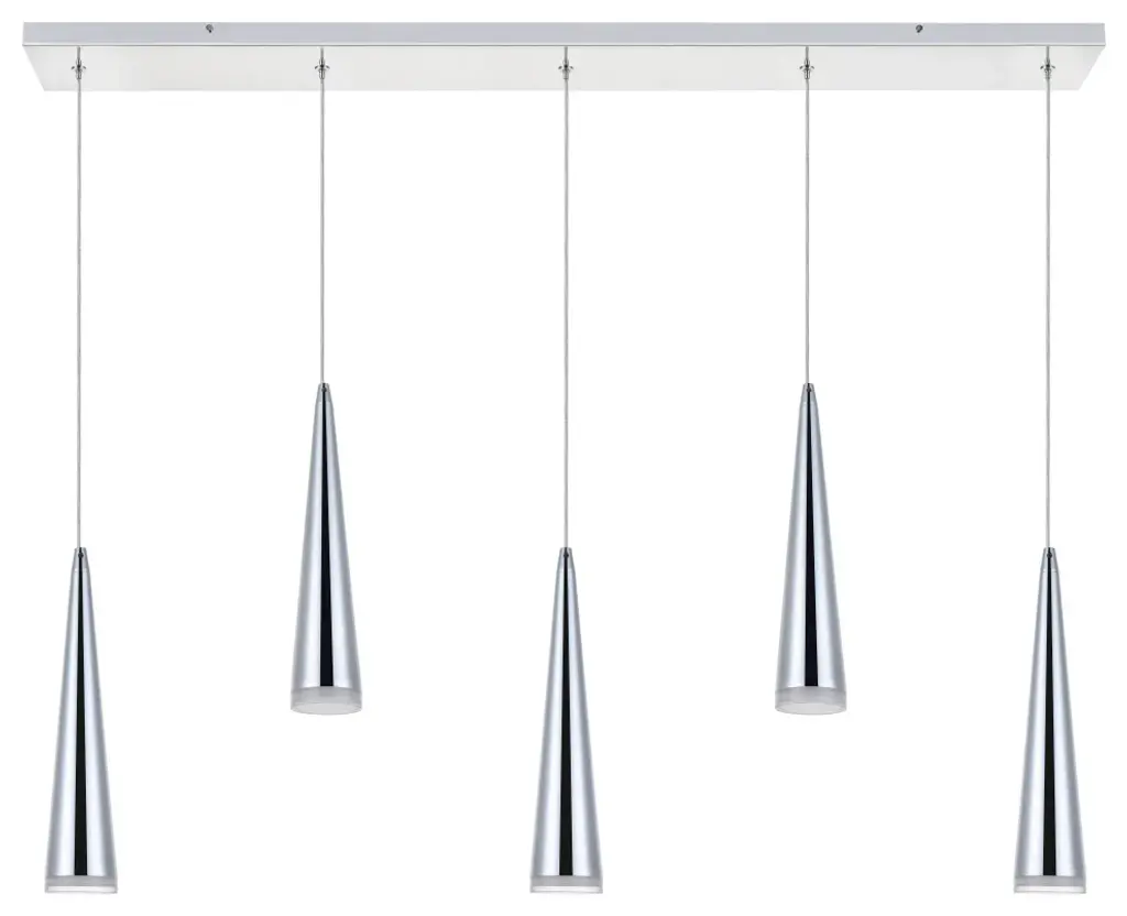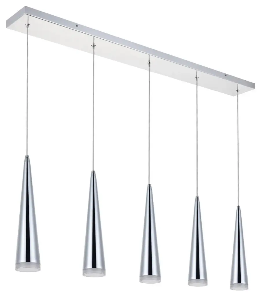 A drop of beauty is sometimes all you need to transform a room into stunning modernity. This sleek 5 light chrome finish pendant will create a contemporary atmosphere that will have your room stylish. As these shimmering lights illuminate, they will surely shine with dignified spirit.Wattage: 5Bulb Type: LEDNumber of Bulbs Required: 5Bulbs Included?: No