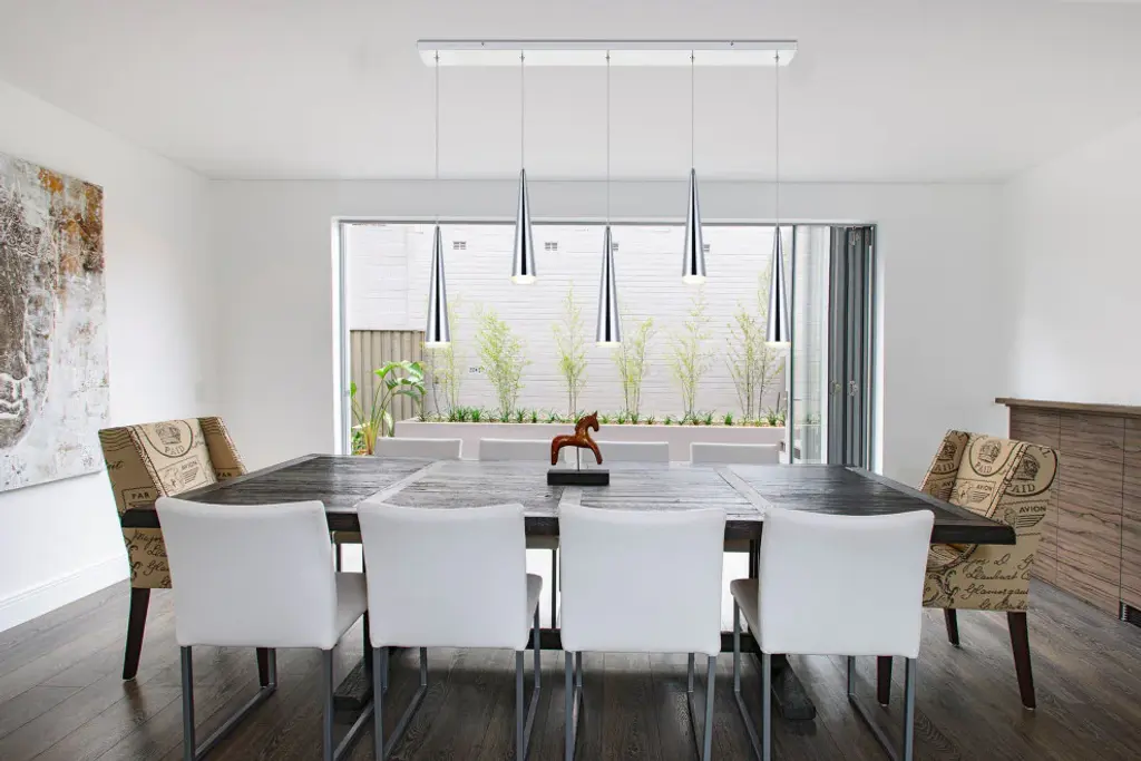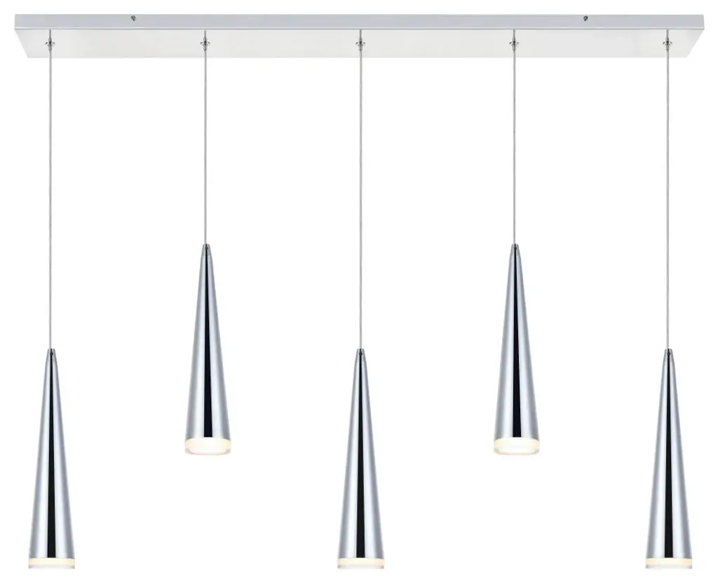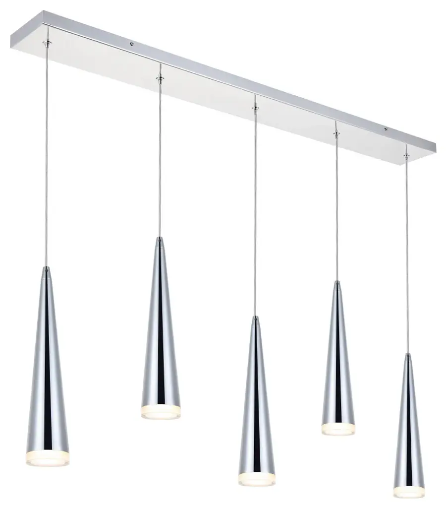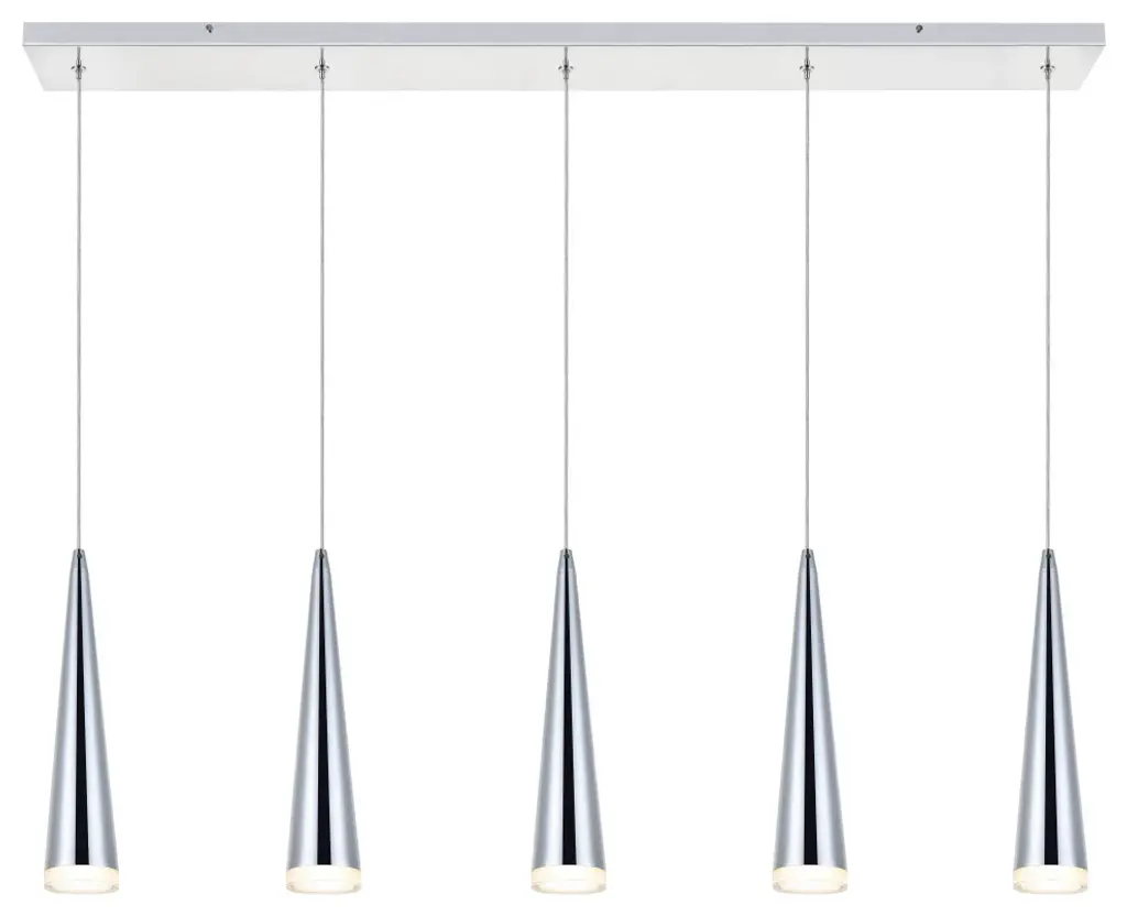 A drop of beauty is sometimes all you need to transform a room into stunning modernity. This sleek 5 light chrome finish pendant will create a contemporary atmosphere that will have your room stylish. As these shimmering lights illuminate, they will surely shine with dignified spirit.Wattage: 5Bulb Type: LEDNumber of Bulbs Required: 5Bulbs Included?: No