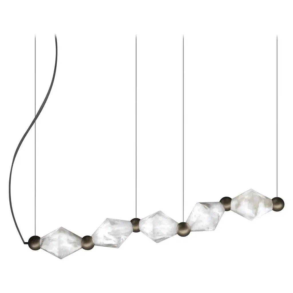 Chronos brushed burnished metal pendant lamp by alabastro italiano dimensions: d 21 x w 142 x h 31 cm. Materials: white alabaster and metal. Available in different finishes: shiny silver, bronze, brushed brass, ruggine of florence, brushed burnished, shiny gold, brushed black, freedom green, shiny black and copper. Please contact us. All our lamps can be wired according to each country. If sold to the usa it will be wired for the usa for instance. Chronos, god of time, inspired this alabastro italiano series. The conical shapes of the alabaster diffusers resemble stylised hourglasses marking the passage of time. After years of experience in the family business, which specializes in design and lighting, riccardo and alberto ongarato found the brand alabastro italiano. Each project is conceived and designed to give a strong sign of recognizability and uniqueness. The use of precious materials such as alabaster, brass, leather and blown glass, worked by the skilful hands of our craftsmen, are combined to create “timeless” objects. From the depths of the earth to the light of the sun. Alabastro italiano care about these extremes and transcends them in a creative dynamic that emphasizes simplicity and clean-cut lines. The company has created an entirely new project made in italy, revolutionizing the previously existing collections into eternal and evergreen lighting elements. By designing clean-cut and original lines, built-in with the latest technology and continuously innovating, alabastro italiano has never lost sight of its goal: perfection. The result of this work is an extraordinary collection of alabaster lightings. Alabaster needs human hands to come to life. The charm of these stone objects comes from their uniqueness, from the fact that they come from the hand of those who has left a mark and a memory with their work, each grain makes each piece unique. Alabaster needs human hands to come to life. The charm of these stone objects comes from their uniqueness, from the fact that they come from the hand of those who has left a mark and a memory with their work, each grain makes each piece unique. Alabaster is a material that leaves little traces of magic all around it. It is difficult to identify the exact point where the material ends and its reflection begins. It is impossible to understand how far the light sinks in its soft transparency. It changes according to the positions in which it is placed, depending on the point of view. Alabaster is a compact and rare stone that lays down very precise laws requires a familiarity that only italian craftsmen possess. Alabastro italiano collaborates with each client to create a unique project. Starting from the advice for better architectural lighting, it brings its know-how, materials, design and creative inspiration to interior architects and interior designers. up to 250v (europe/uk standard).