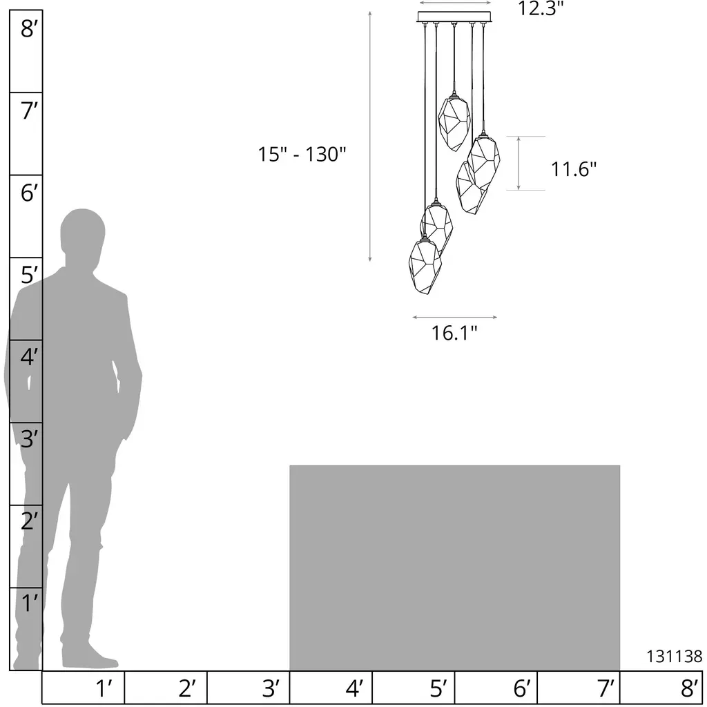The Chrysalis 5-Light Large Crystal Pendant is a multi-port fixture that features five large, handcrafted faceted glass crystals suspended from a round canopy. A thick, clear layer of glass is encased in an outer cocoon of hand-blown, colored glass (matte black or white; all 5 are same color). The lower portion of the outer layer of glass is removed during a hand-polishing process to reveal the inner crystal clear layer below. Each crystal is lit from within. Customizable cable lengths can be shortened to create a dramatic semi-flush.