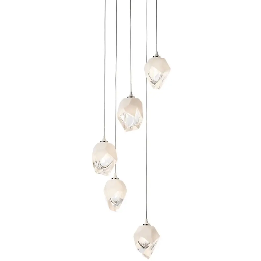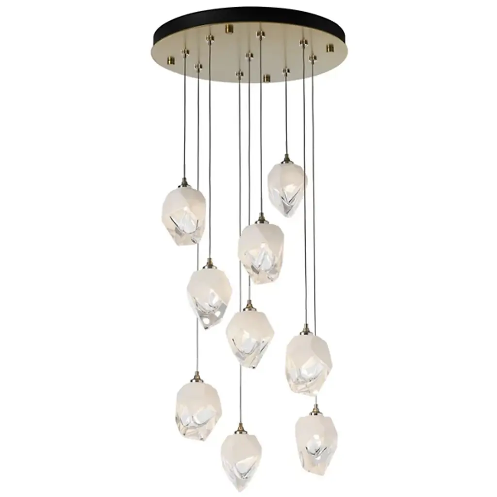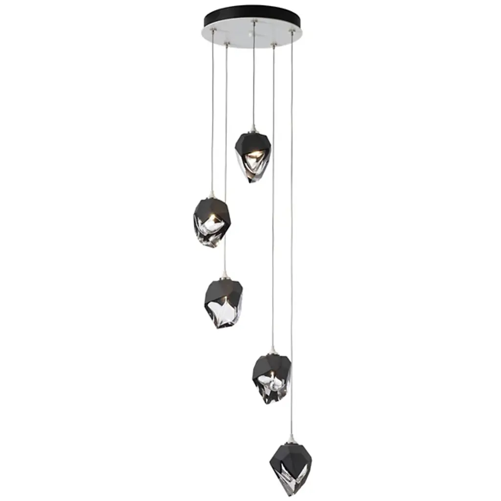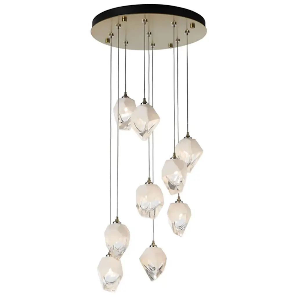 The lighting centerpiece you need to transform your modern interiors. Designed by David Kitts and Paul Marr-Hilliard, the Chrysalis Crystal Multi-Light Pendant by Hubbardton Forge is a sparkling, dramatic piece meant to artfully suggest diamonds coming from lumps of coal. Each faceted shade is made entirely of hand-blown glass, with a transparent, crystalline portion that seems to be emerging from the opaque portion above. In a tall entryway or stairwell, this multi-light pendant is a truly brilliant focal point, whether it’s turned on or not.