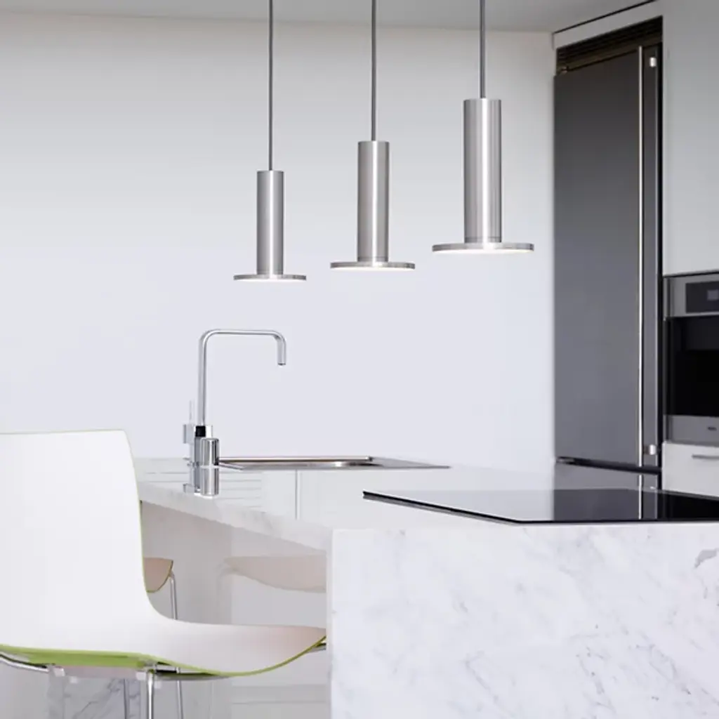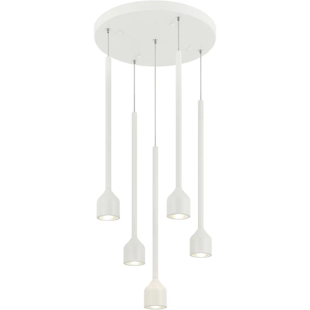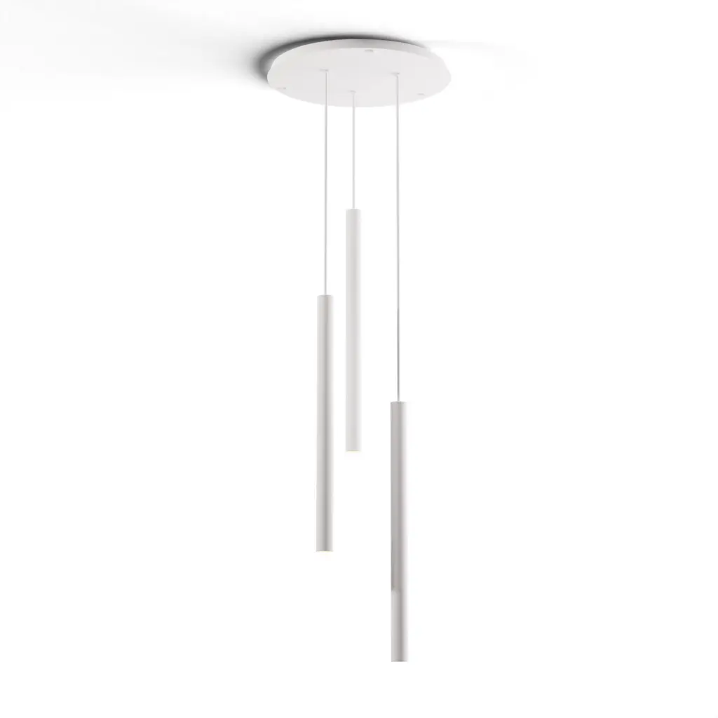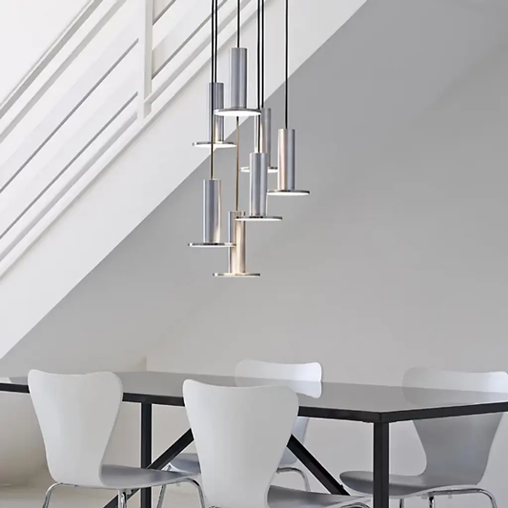 The Pablo Designs Cielo LED Multi-Light Pendant is a customizable conglomeration of Cielo Pendants. Quite literally named after heaven (or cielo in Spanish), this fixture will illuminate your entryway, living room, or dining room in a soft, angelic glow from its glare-free, flat panel LED light source. Each individual pendant is a simple column that culminates in a round disk, and is available in several different finishes.