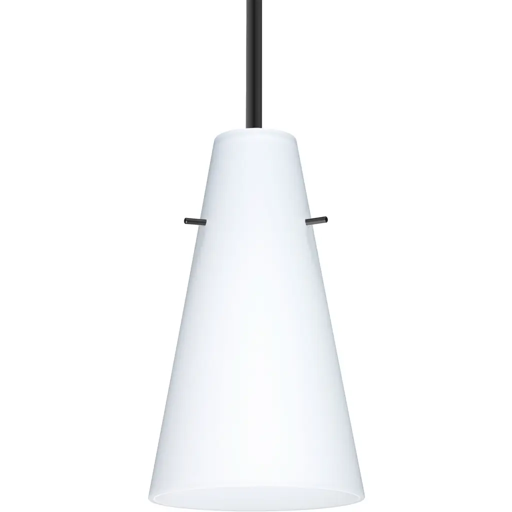 Cierro is a softly tapered narrow cylinder, creating a refined contemporary look. Our Opal glass is a soft white cased glass that can suit any classic or modern decor. Opal has a very tranquil glow that is pleasing in appearance. The smooth satin finish on the clear outer layer is a result of an extensive etching process. This blown glass is handcrafted by a skilled artisan, utilizing century-old techniques passed down from generation to generation. The cord pendant fixture is equipped with a 10' SVT cordset and a low profile flat monopoint canopy. These stylish and functional luminaries are offered in a beautiful Black finish.