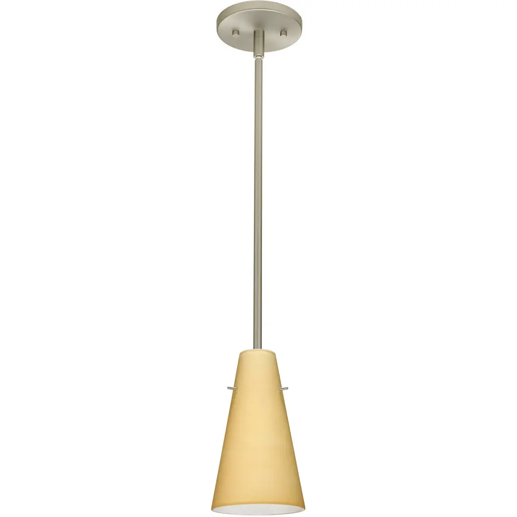 Cierro is a softly tapered narrow cylinder, creating a refined contemporary look. Our Vanilla Matte glass is a light golden cased glass and opal inner layer. The orange glow has a low key harmonious display that exudes a warm mood. When lit the glass is vitalizing as well as stylish. The smooth satin finish on the outer layer is a result of an extensive etching process. This blown glass is handcrafted by a skilled artisan, utilizing century-old techniques passed down from generation to generation. The stem pendant fixture is equipped with an adjustable telescoping section, 4 connectable stem sections (3", 6", 12", and 18") and low Profile flat monopoint canopy. These stylish and functional luminaries are offered in a beautiful Satin Nickel finish.