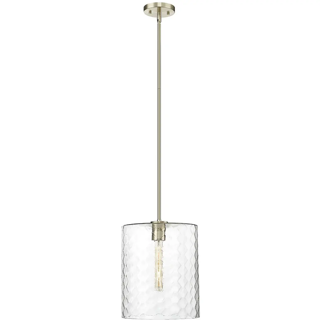 A companion to Falls Mills, Cindara features hand-cut Indian glass in an exquisite chiseled pattern. Available in two sizes, the wide drum shape of the shade showcases the rippling glass from all angles. The Aged Brass metalwork provides an upscale complement to the statement glass. Due to the one-of-a-kind nature of the medium, exact colors and patterns may vary slightly from the image shown.