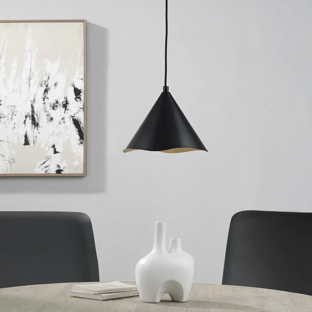Matte black finished iron holds an effortlessly chic appeal that can be felt by all who pass by. Hanging alone or arranged strategically in a group, this ceiling light fixture sets a stylish tone for the contemporary home. Best styled with neutral tones and organic-inspired textures, this light offers optimal complement and contrast to the pieces in its vicinity.