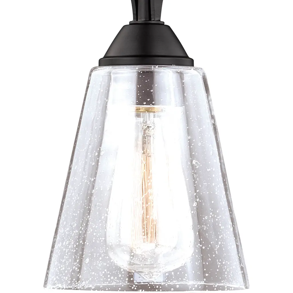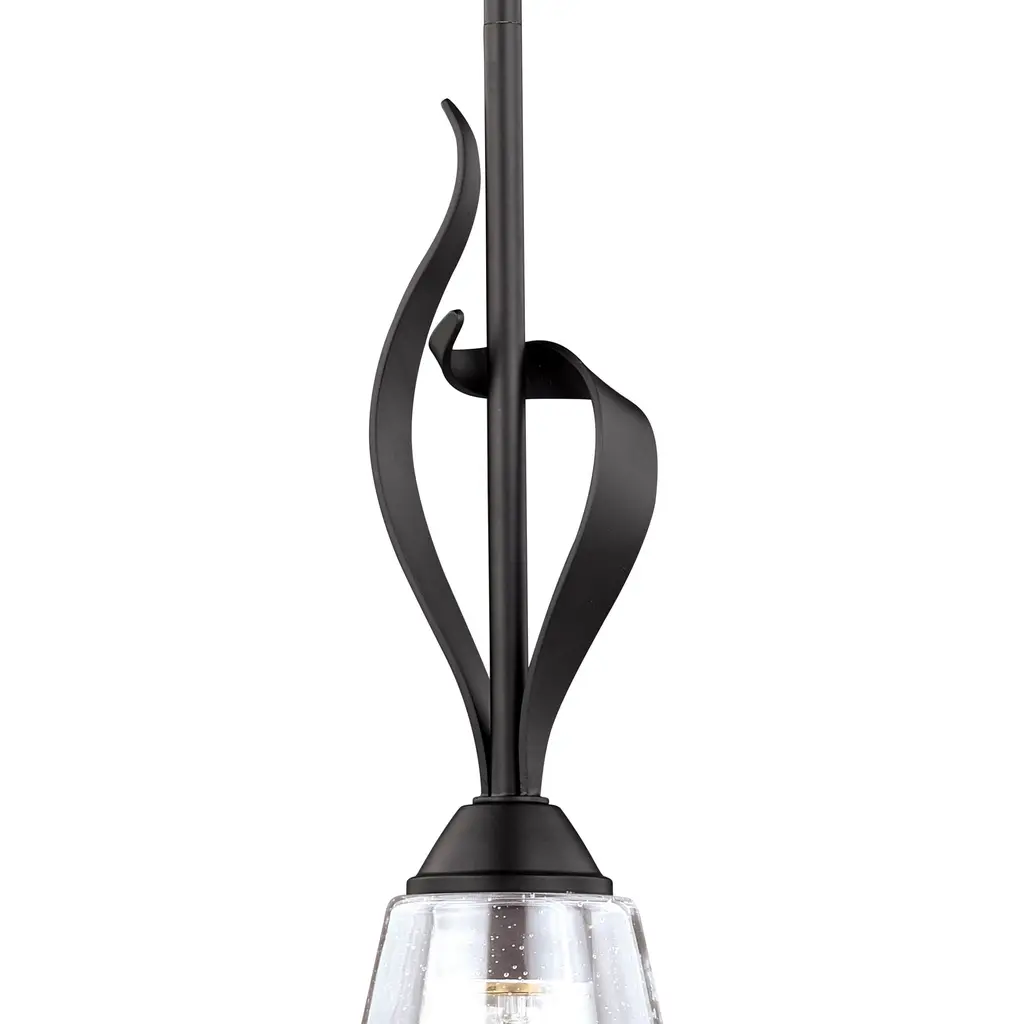 Strongly inspired by nature, this stunning collection is named Cinta. Soft vine like ribbons are accentuated in an oil rubbed bronze finish. Tapered clear seeded glass offsets the playful nature of this collection. Combine that with vintage Edison style filament bulbs to complete the look. Designed to make a soft-spoken statement of elegance, the Cinta collection will surely beautify any interior space. Extensive matching fixtures to coordinate the look throughout your entire home.