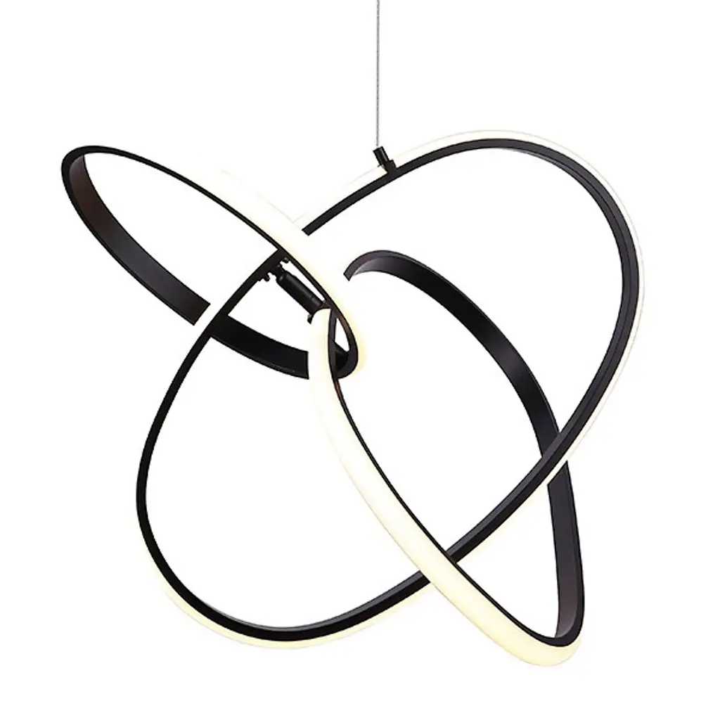 The Circa LED Pendant by Avenue Lighting is sure to be a focal point in any setting. This dynamic fixture is comprised of a series of metal rings interlinked together to create a stunning structure of light. Each ring’s outer edge is made of an integrated LED paneling, sending a softly diffused beam of light outward and creating a welcoming atmosphere. Linked by a small swiveling stem, the rings can be adjusted to create the desired visual effect.