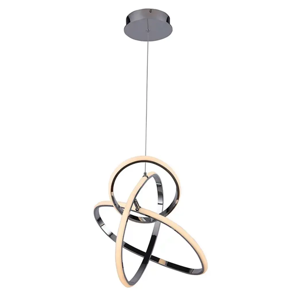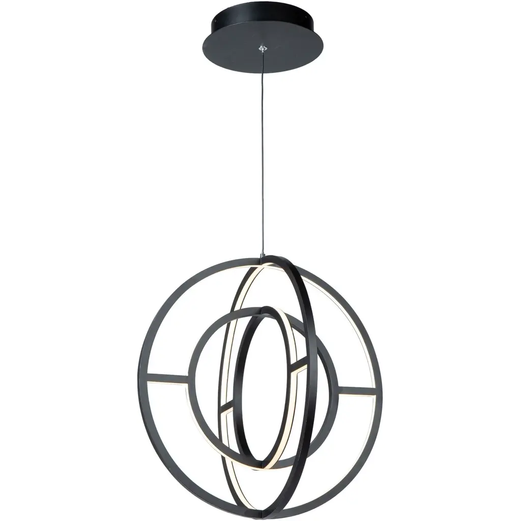 The Circa LED Pendant by Avenue Lighting is sure to be a focal point in any setting. This dynamic fixture is comprised of a series of metal rings interlinked together to create a stunning structure of light. Each ring’s outer edge is made of an integrated LED paneling, sending a softly diffused beam of light outward and creating a welcoming atmosphere. Linked by a small swiveling stem, the rings can be adjusted to create the desired visual effect.