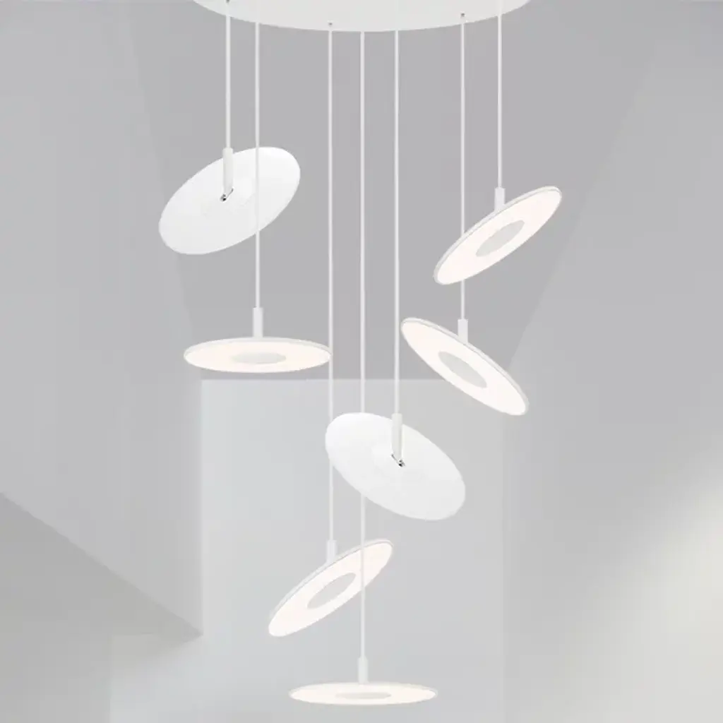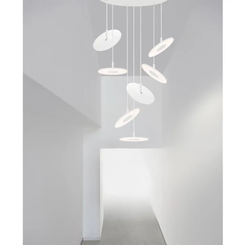 The Pablo Designs Circa Multi-Light LED Pendant is a cascade of evenly diffused light, multiplying the celebrated Circa Pendant design in a stylish assemblage of rotating disks. Equipped with an innovative LED flat-panel that puts forth an impressive amount of light, the ergonomic design integrates the LED module in to the structure as well as eliminating any harsh glare. Able to be rotated and tilted, each shade seems to have a mind of its own, contributing to different visual compositions with a simple movement.