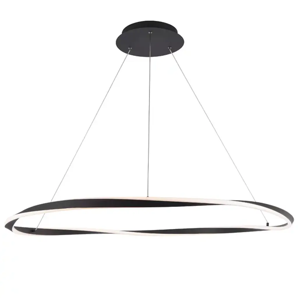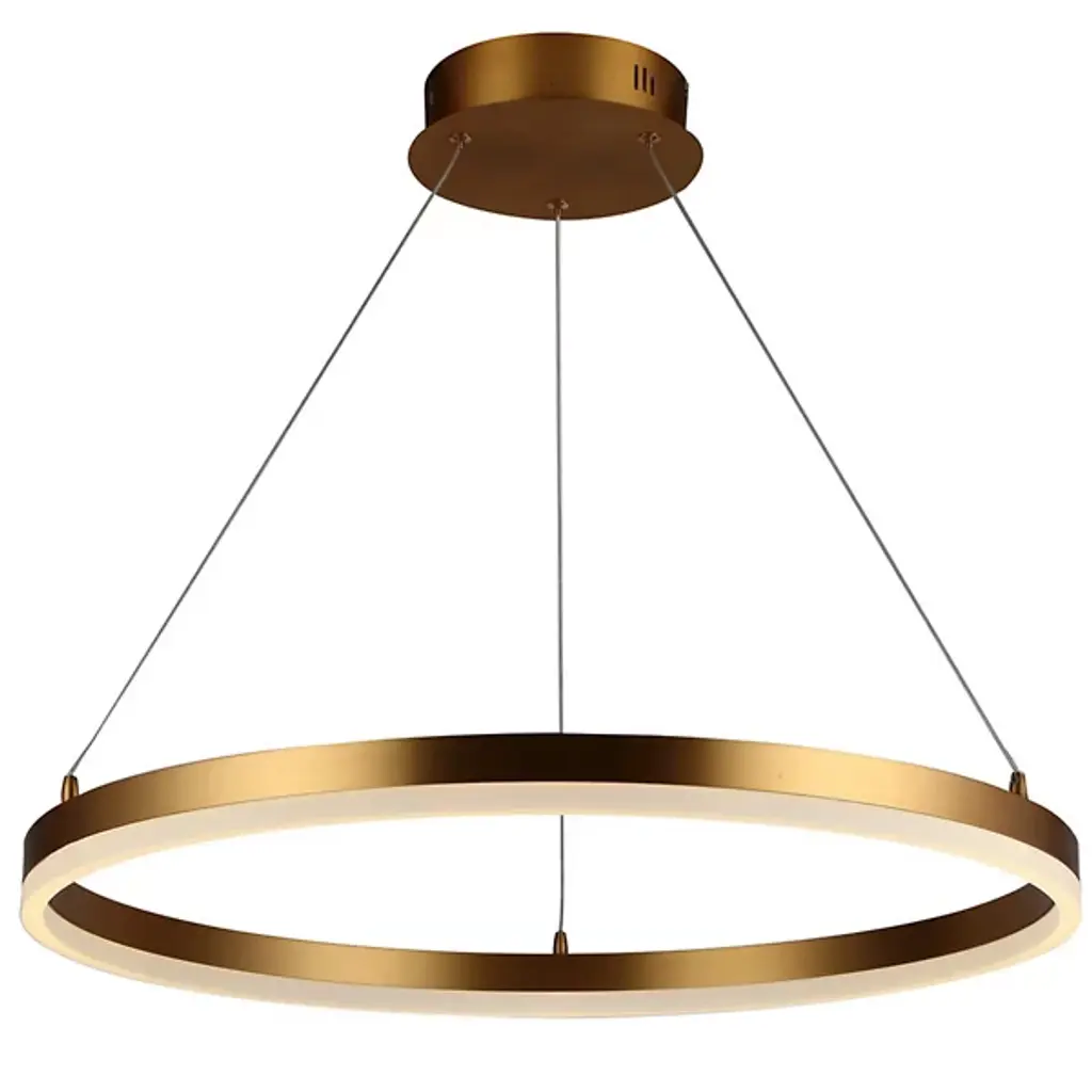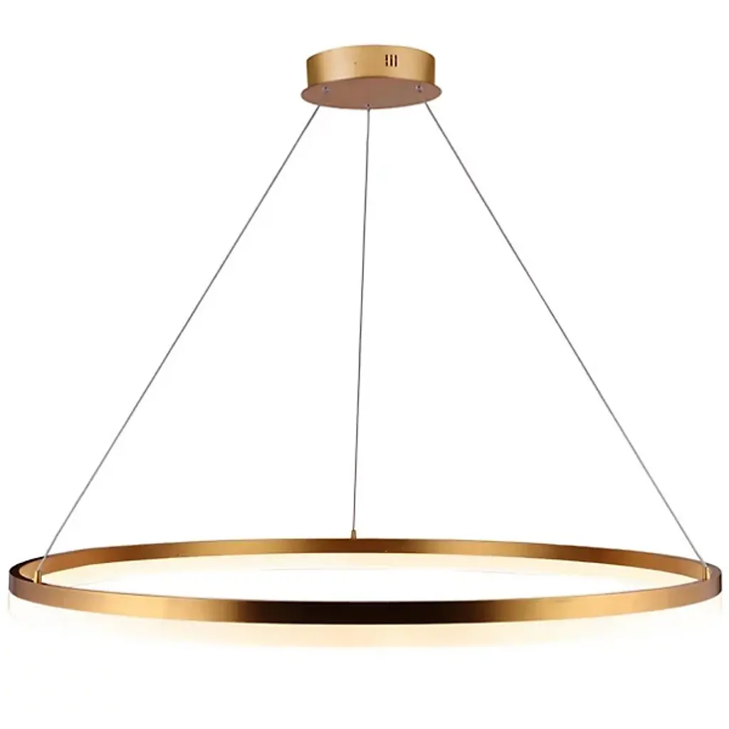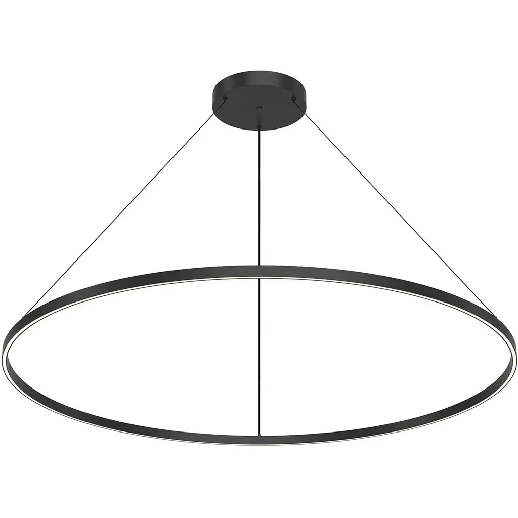 The Circa Round LED Pendant by Avenue Lighting is a glowing example of modern minimalism. This stark fixture hangs from a series of slender cables; its ring-shaped frame consisting partly of robust metal and partly of opal glass. A powerful but energy-efficient beam of LED light illuminates a room and forms a glowing halo in the air, while its simplistic design allows it to be as understated as necessary to suit a room.