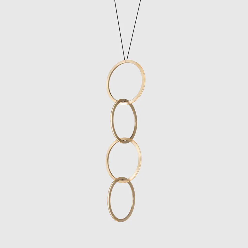 Circus is a remarkable system of interconnected rings which can be arranged in sequence to create striking vertical decoration. Designed by Resident Studio, each brass ring projects an elegantly diffused warm LED light source outwards around a 360 degree plane. The revolutionary plug and play system allows for power sharing between rings and a large range of variations to suit spaces of various shapes and sizes. Circus is a theatrical and truly flexible system ideal for commercial and residential environments. Features