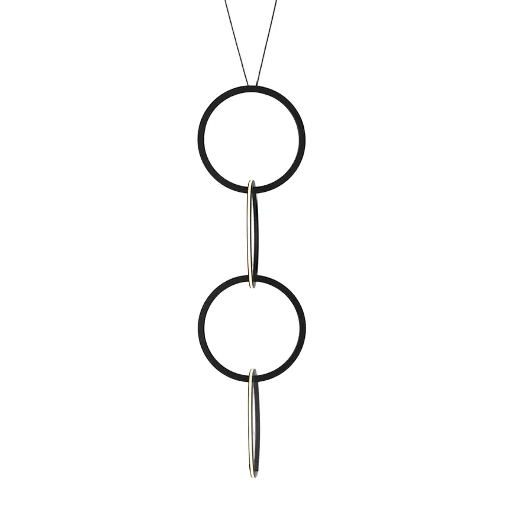Circus is a remarkable system of interconnected rings which can be arranged in sequence to create striking vertical decoration. Designed by Resident Studio, each brass ring projects an elegantly diffused warm LED light source outwards around a 360 degree plane. The revolutionary plug and play system allows for power sharing between rings and a large range of variations to suit spaces of various shapes and sizes. Circus is a theatrical and truly flexible system ideal for commercial and residential environments. Features