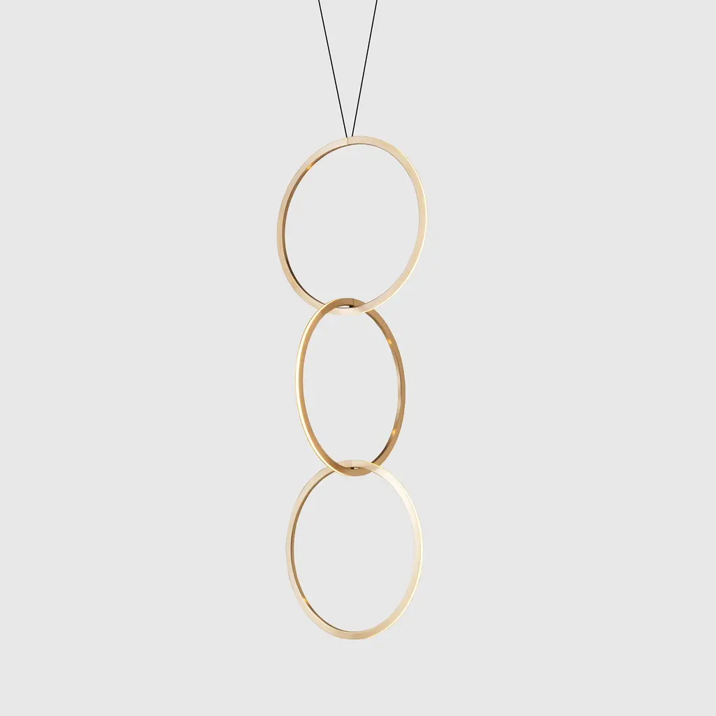 Circus is a remarkable system of interconnected rings which can be arranged in sequence to create striking vertical decoration. Designed by Resident Studio, each brass ring projects an elegantly diffused warm LED light source outwards around a 360 degree plane. The revolutionary plug and play system allows for power sharing between rings and a large range of variations to suit spaces of various shapes and sizes. Circus is a theatrical and truly flexible system ideal for commercial and residential environments. Features