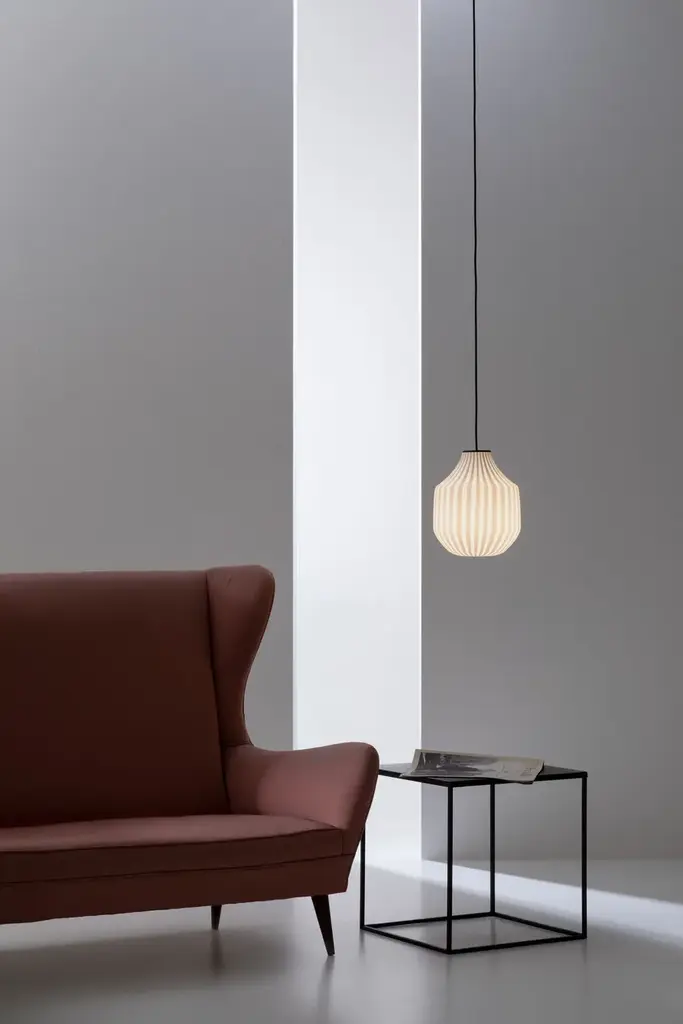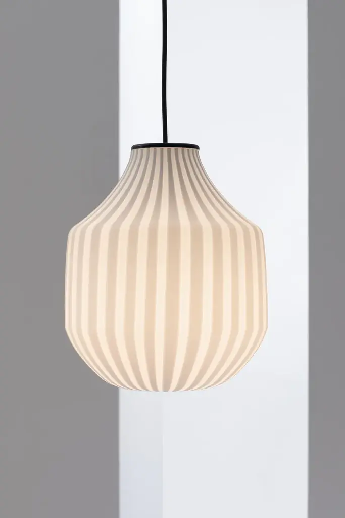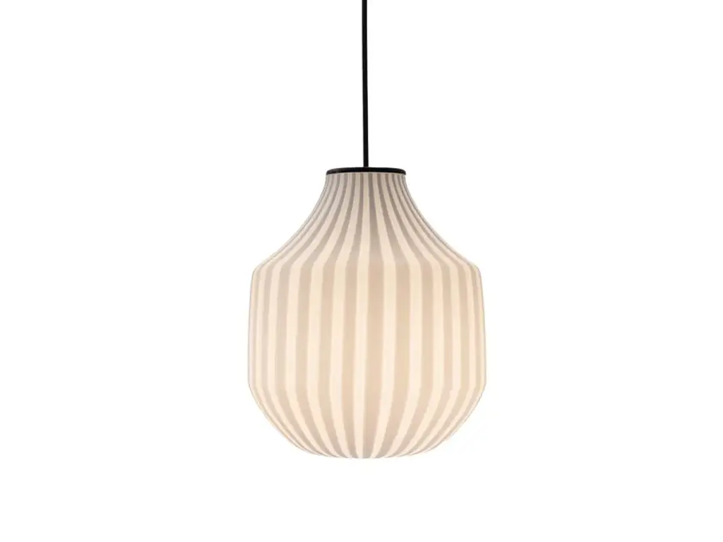 A line of three suspension lights made from blown glass with a beautiful white “fabric” filigree motif.These lamps are hand-crafted using an ancient technique dating back to the sixteenth century, which involves winding and lengthening milky white strips of glass onto molten glass. Contrasting bands give the collection a soft, symmetrical look reminiscent of a circus tent, hence its name.The product of real skill, each piece is unique and comes in three different shapes and sizes, which can be combined to create original compositions.Colour: matt whiteMaterial: glassLighting source: 1x E27 max 105WBulb not provided
