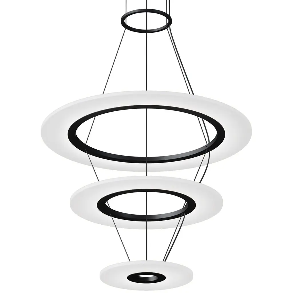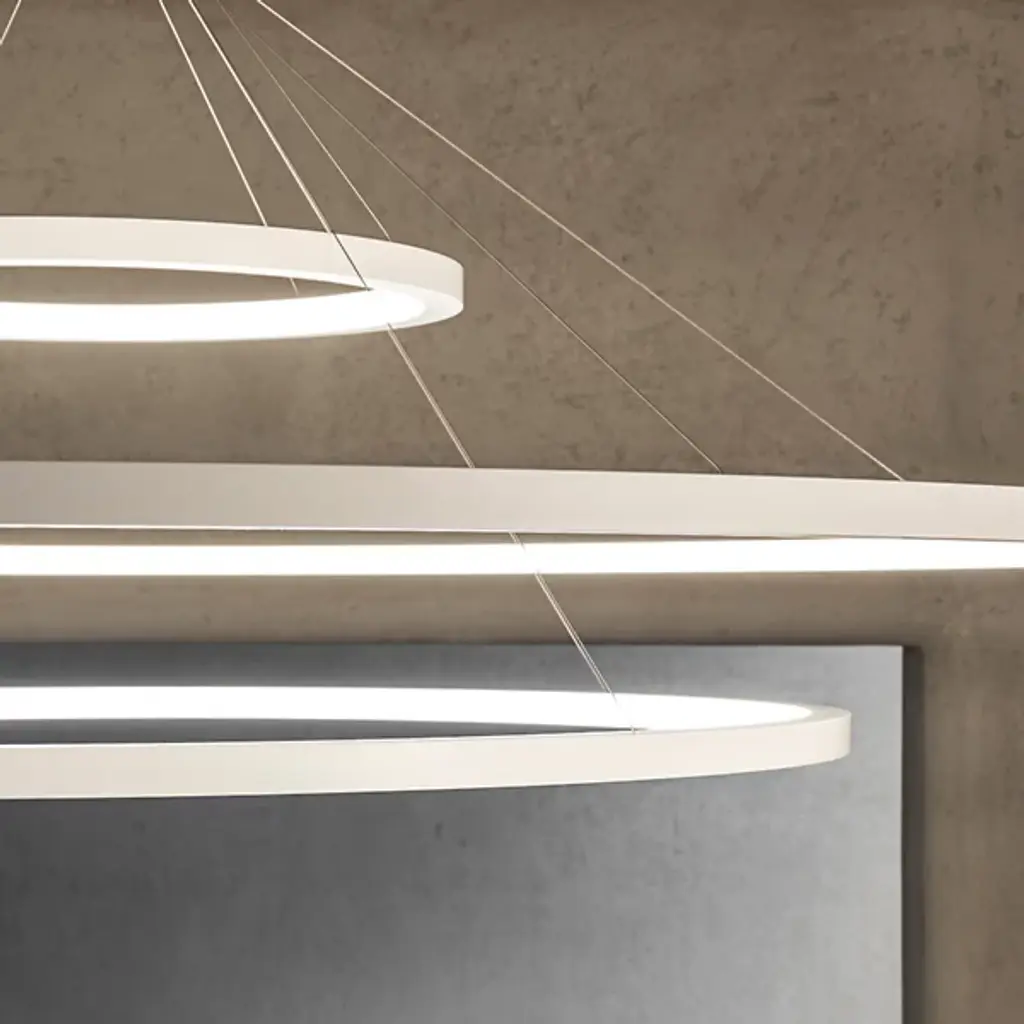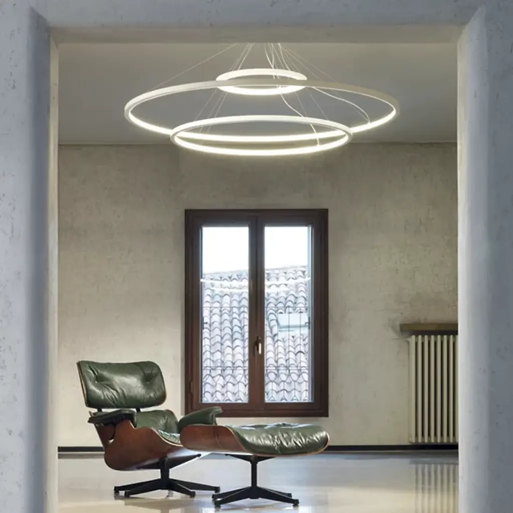 The Circus Multi Round LED Pendant from Andcosta epitomizes elegant contemporary design through its open construction and streamlined structure, providing efficient illumination with a touch of sophistication. Crafted by Carlo Zerbaro, the visionary behind Andcosta, this pendant descends from a compact canopy, boasting a minimalist aesthetic. Within its sleek aluminum housings, a series of rings and ovals suspended by cables, the LED lighting casts a gentle, indirect glow, fostering a welcoming atmosphere. Zerbaro's extensive background in product design, photography, and artistic direction shines through in this pendant, showcasing his dedication to impeccable craftsmanship and innovative design principles.