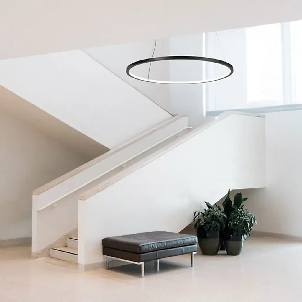 The Circus Round Large Acoustic Lighting LED Pendant with Uplight from Andcosta is designed by Carlo Zerbaro. Sized for large spaces, It celebrates minimalism with its ring shape and refined aluminum composition. The framework of this pendant is accented by a shade of glass that is effortlessly illuminated by an integrated LED for even light distribution throughout your living space. This sloped-ceiling adaptable piece can be placed in a variety of settings. The acoustic panel has a sound-absorbing sheet, and removable upholstery gives it antibacterial properties.