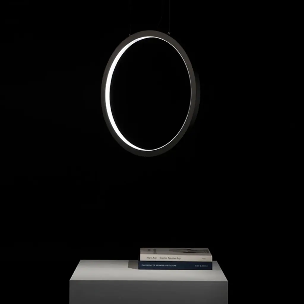 The Circus Round Vertical LED Pendant from Andcosta is a stunning piece that epitomizes contemporary elegance. The pendant is designed for indirect lighting and was created by Carlo Zerbaro, the visionary behind the company. It descends from a small canopy, featuring a sleek ring housing that encases efficient LED lamping. Zerbaro's multifaceted career spans product design, photography, and artistic direction, with a keen focus on materials, technology, and manufacturing processes. His meticulous attention to detail and stylistic coherence are on full display, creating a perfect blend of contemporary evolution and Italian craftsmanship.