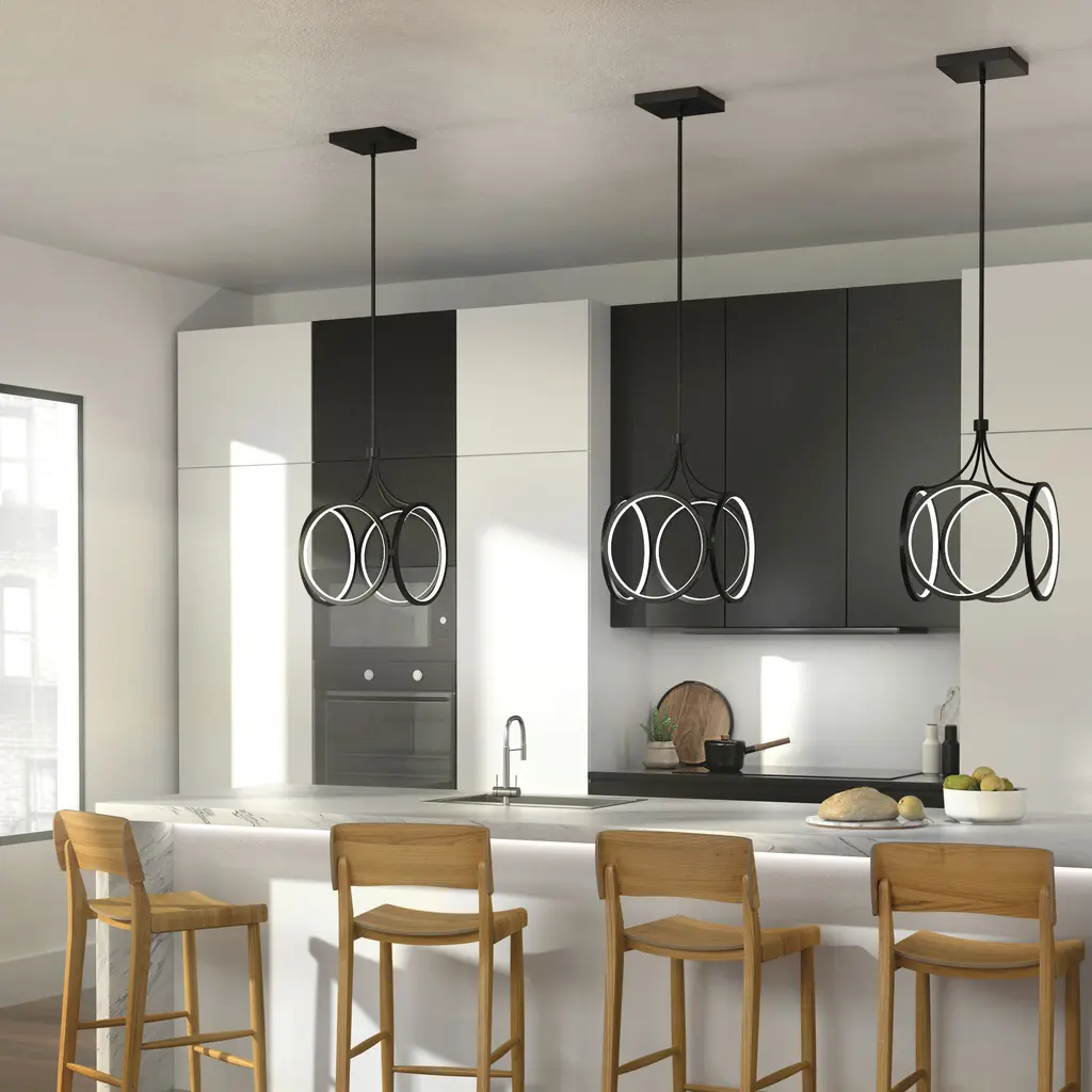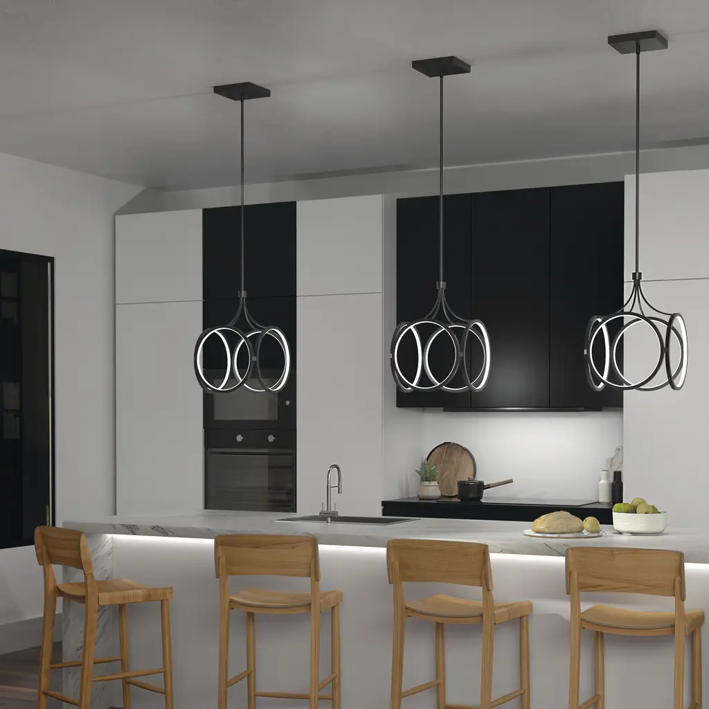 Ciri Led 14 Inch Matte Black Pendant Ceiling Light In Chrome And White