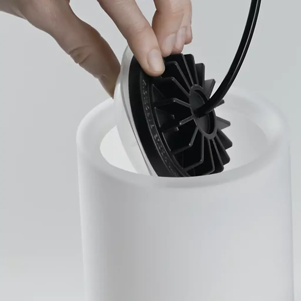 At first glance, the Santa & Cole Cirio LED Mini Pendant is a simple cylindrical shade. Made from either Sargadelos porcelain, glass or Brass, the light created is warm and beautiful, but it is the LED module that is the defining feature. Specifically designed to fit a range of Santa & Cole pendants, the module is meant to be as easy to install as a traditional light bulb. The light replicates the warmth of incandescent light, and seamlessly accommodates all three shade options.