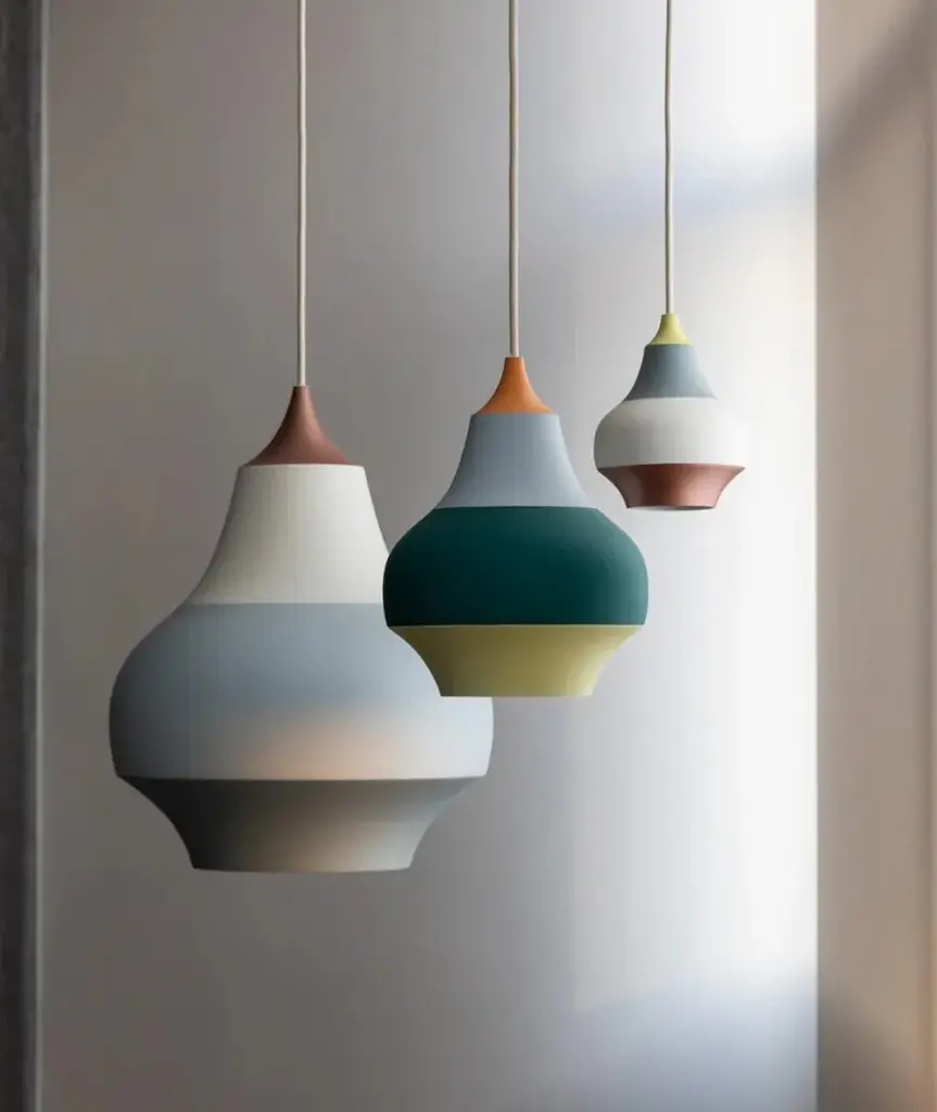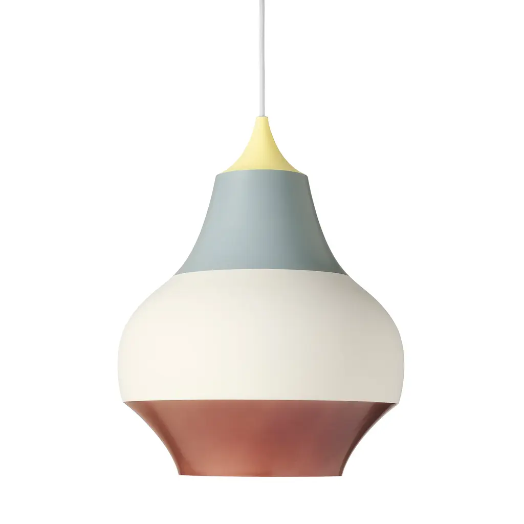 The Cirque Pendant is a play between colors and forms inspired by balloons, carrousels, colors and light. The idea to the color rankings comes from the experience of colors in circular motions where they often are perceived as continuous lines. The shape is inspired by the well-known onion shaped domes on several of the buildings in the TIVOLI garden. The fixture provides a downward glare-free soft light by means of the white lacquered inner reflector.