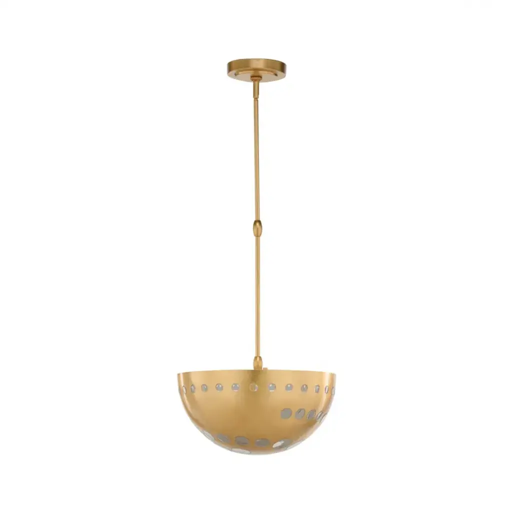 Bold and dynamic. This hand gold-leafed chandelier is beautiful as a single or stunning in pairs or in a row over a large island. Available in a larger version. Comes with 1-9" rod and 2-13 1/2" rods. Designed by Bradshaw Orrell.