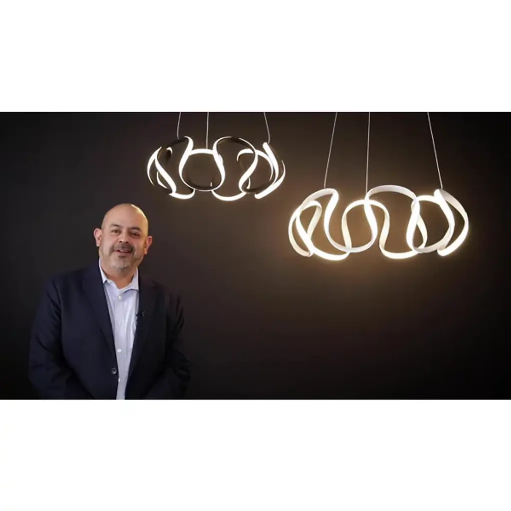 The exuberant personality of the Cirro LED Pendant by Oxygen Lighting is one that can’t be ignored. This lively and luminous fixture drops from a disc-shaped canopy by a series of ultra-thin cables. A single, seamless steel band expressively curls up and down as it forms a ring. A matte white silicone diffuser glows brilliantly with light from an integrated LED light strip, sending a balanced wash of illumination around the room.