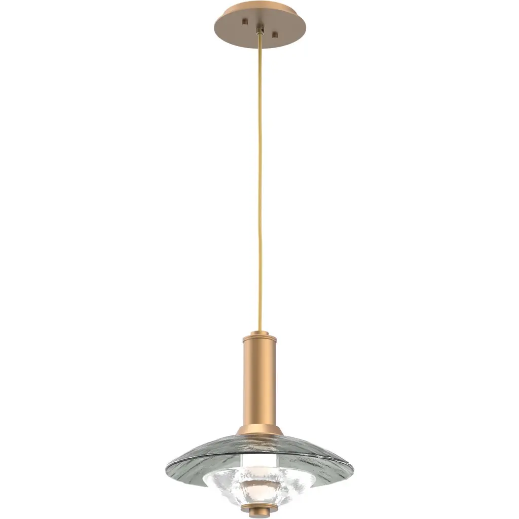 A unique fusion of textured kiln-fused glass, cast crystal glass and precision-crafted metal lends surprising drama to this modern pendant style. Available in a choice of Smoke Granite or Clear Granite textured glass and several finishes.