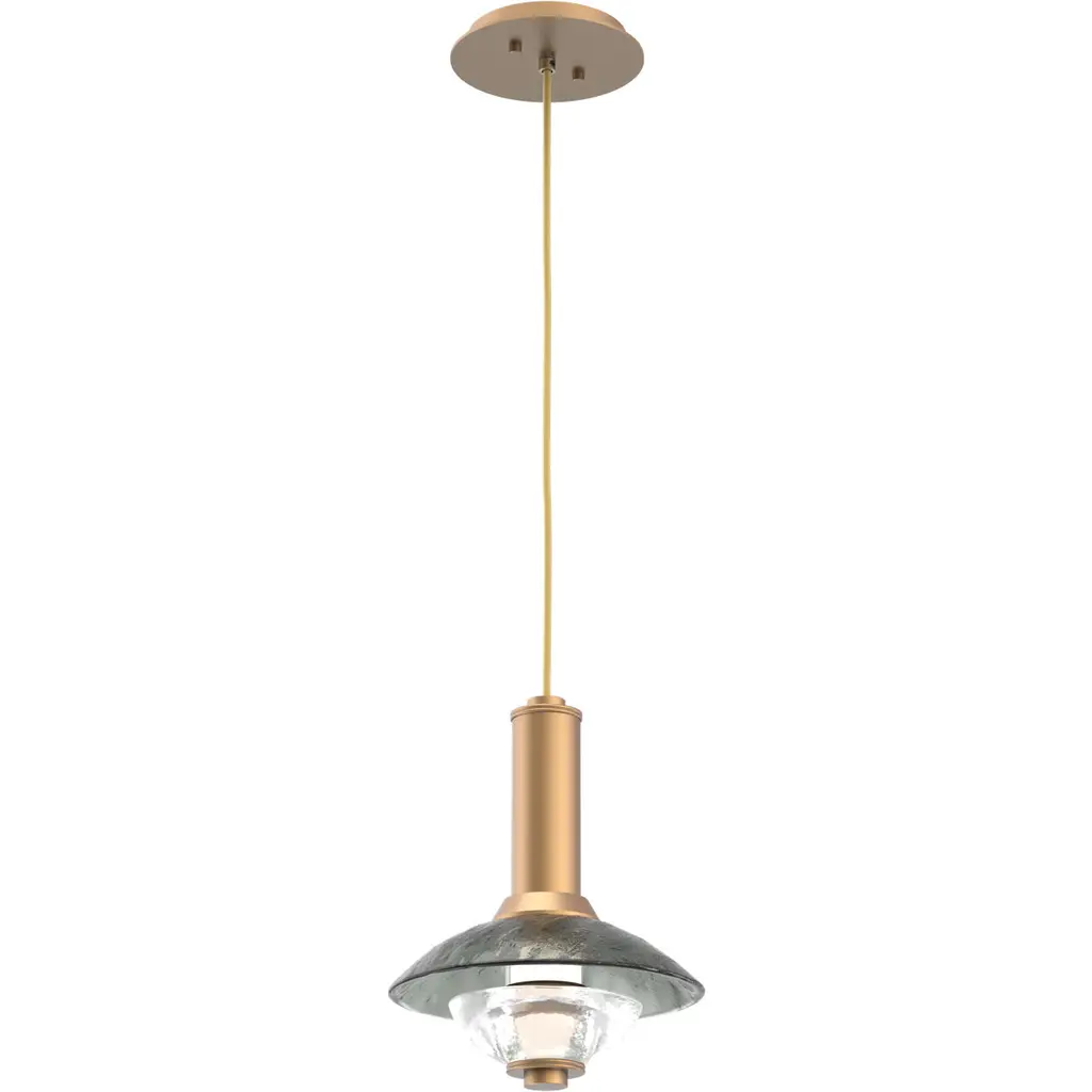 A unique fusion of textured kiln-fused glass, cast crystal glass and precision-crafted metal lends surprising drama to this modern pendant style. Available in a choice of Smoke Granite or Clear Granite textured glass and several finishes.
