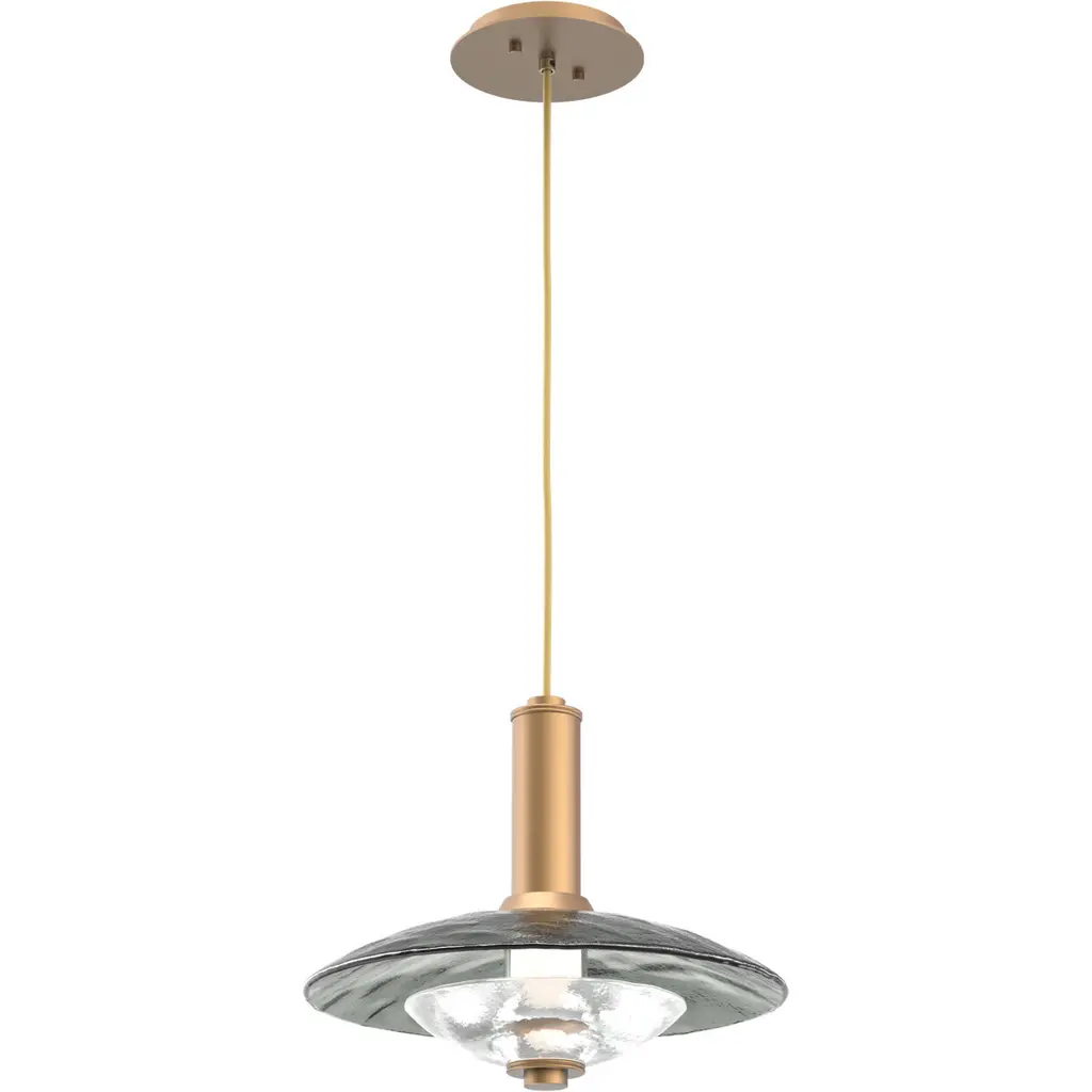 A unique fusion of textured kiln-fused glass, cast crystal glass and precision-crafted metal lends surprising drama to this modern pendant style. Available in a choice of Smoke Granite or Clear Granite textured glass and several finishes.