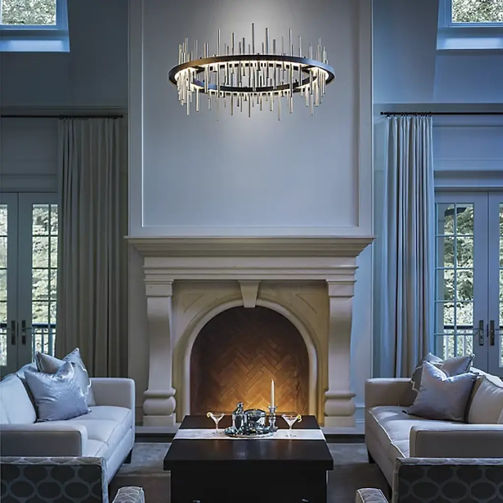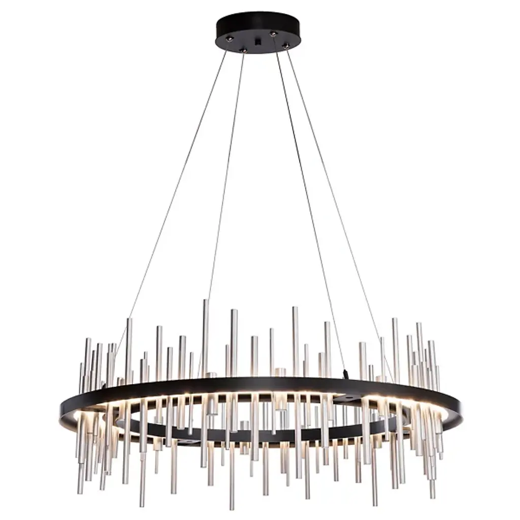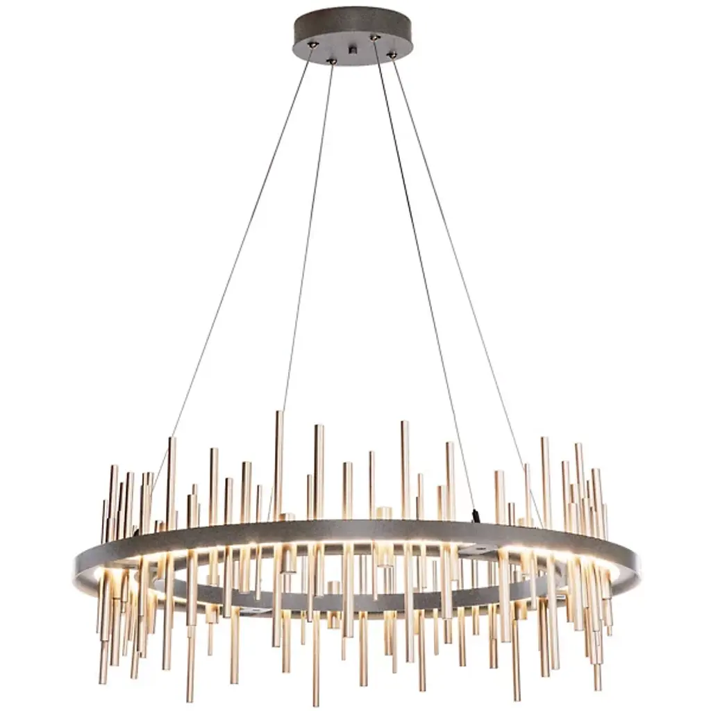 Hubbardton Forge’s Cityscape Circular LED Pendant receives its distinctive namesake from its ultra-contemporary profile build that allows it to stand out in its contemporary application space. The piece’s most distinctive feature is its use of polished aluminum rods that line the circumference of the circular framework. The framework itself is also made from aluminum for a much more cohesive aesthetic while the rods are fixated at different heights to convey a sense of a city skyline, hence its name. The rods can produce ambient up and downward lighting, allowing the piece to produce a warm and comforting aura of light.