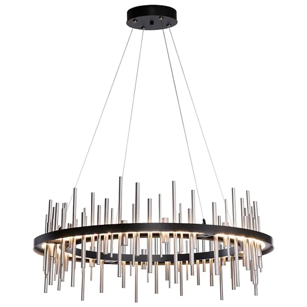 Hubbardton Forge’s Cityscape Circular LED Pendant receives its distinctive namesake from its ultra-contemporary profile build that allows it to stand out in its contemporary application space. The piece’s most distinctive feature is its use of polished aluminum rods that line the circumference of the circular framework. The framework itself is also made from aluminum for a much more cohesive aesthetic while the rods are fixated at different heights to convey a sense of a city skyline, hence its name. The rods can produce ambient up and downward lighting, allowing the piece to produce a warm and comforting aura of light.