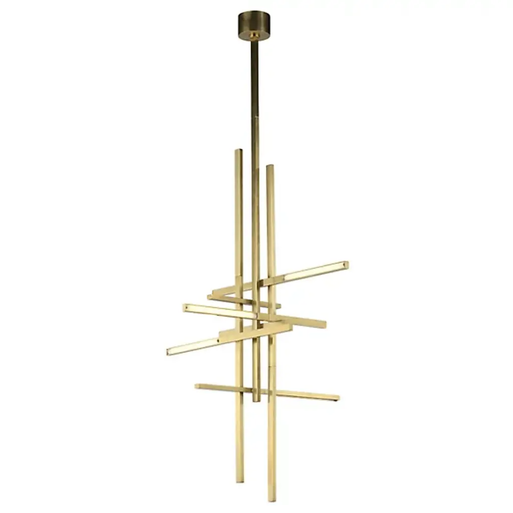 The Cityscape LED Pendant from Visual Comfort Modern showcases exceptional craftsmanship and a striking geometric design. Its expertly crafted frame features multiple rods branching from the center, forming intriguing intersections that add a dynamic visual element. The rotatable shades allow you to customize the lighting experience, making it unique to your space. Designed by Sean Lavin, integrated LED lamping delivers warm, ambient light, creating a harmonious blend of bold form and practical function.