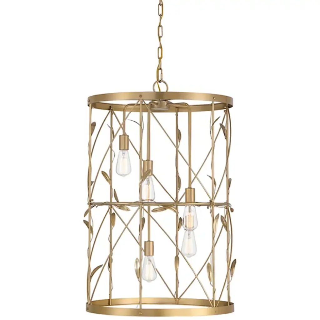 Open Metal Work Lantern Featuring Stem And Leaf Detail In Gold Leaf. Comes With Six Feet Of Chain.