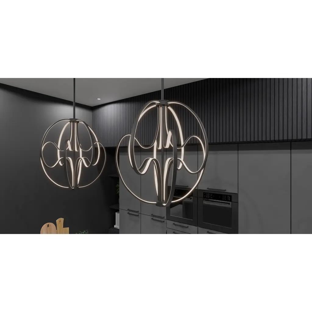 With its soft curves and striking geometric shape, Clairon pendant lights are both elegant and captivating. The globe silhouette features swirling lines in your choice of matte black or polished chrome, complemented by an integrated LED light source for an all-over lighting effect. Part of the popular Platinum by Quoizel collection, Clairon pairs perfectly with modern or contemporary spaces.
