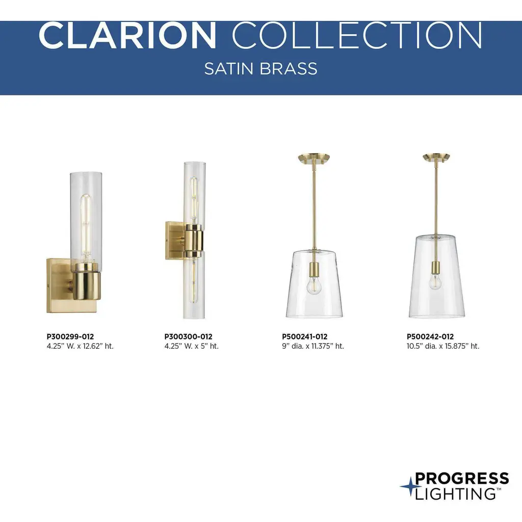 Clarion 1 Light 11 Inch Satin Brass Pendant Ceiling Light, Medium