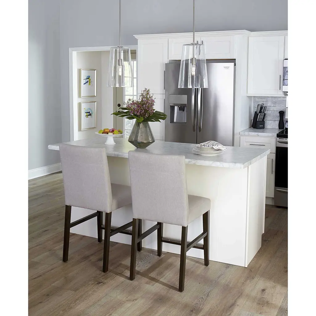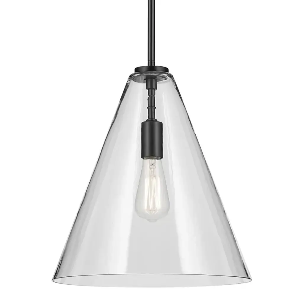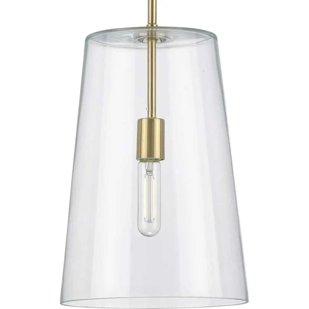 Who says you have to sacrifice forms for function? This versatile pendant features a simple, clear glass shade that embraces minimalist modernity and functional task lighting. The glass shade rests at the end of a sleek polished nickel bar that attaches to the ceiling. Each light fixture has a swivel at its base that makes it perfect for installing on flat or angled ceilings.