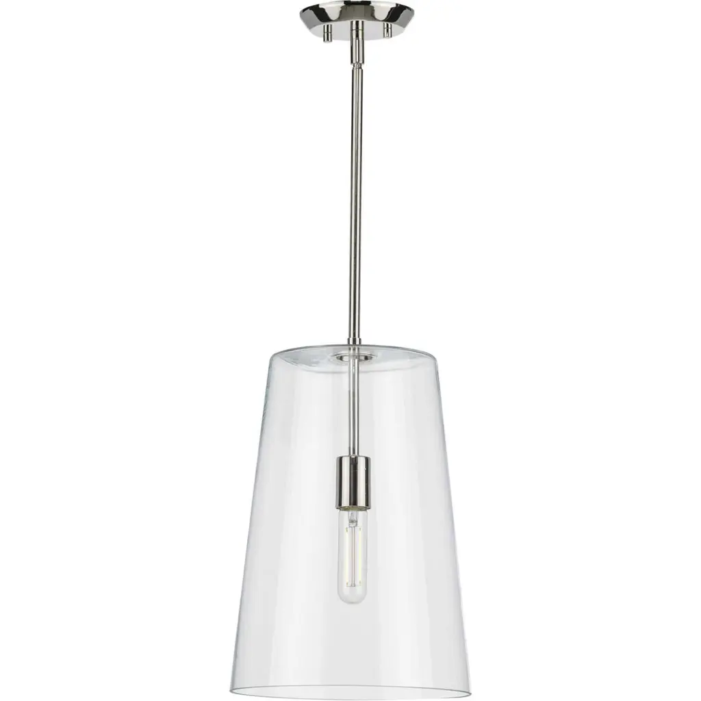 Clarion 1 Light Polished Nickel Pendant Ceiling Light, Medium