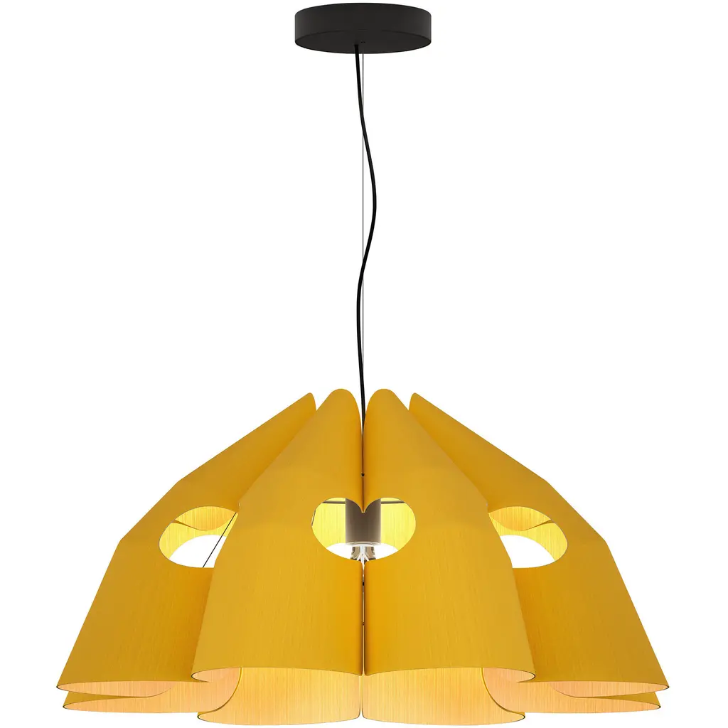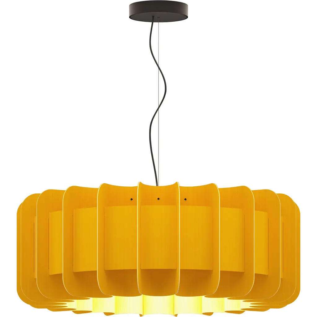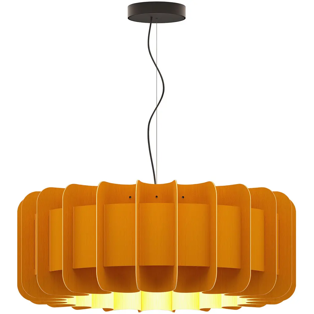 A truly brilliant experiment in natural modern lighting, the Clarissa Pendant by Bruck Lighting features a unique design that evokes the shape of a mechanical gear or wheel spoke, yet is crafted entirely from specially engineered wood veneer. As part of the Wood Ecological Project (WEP), this pendant showcases the versatility of flexible, durable wood, with its grain revealed through a translucent finish both inside and out. This stunning piece adds a modern yet natural touch, making it an ideal centerpiece above a round dining table or breakfast nook.