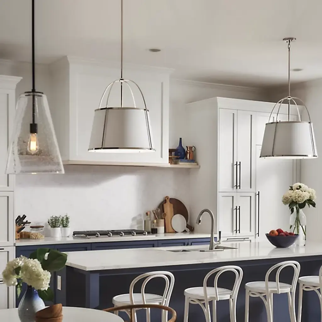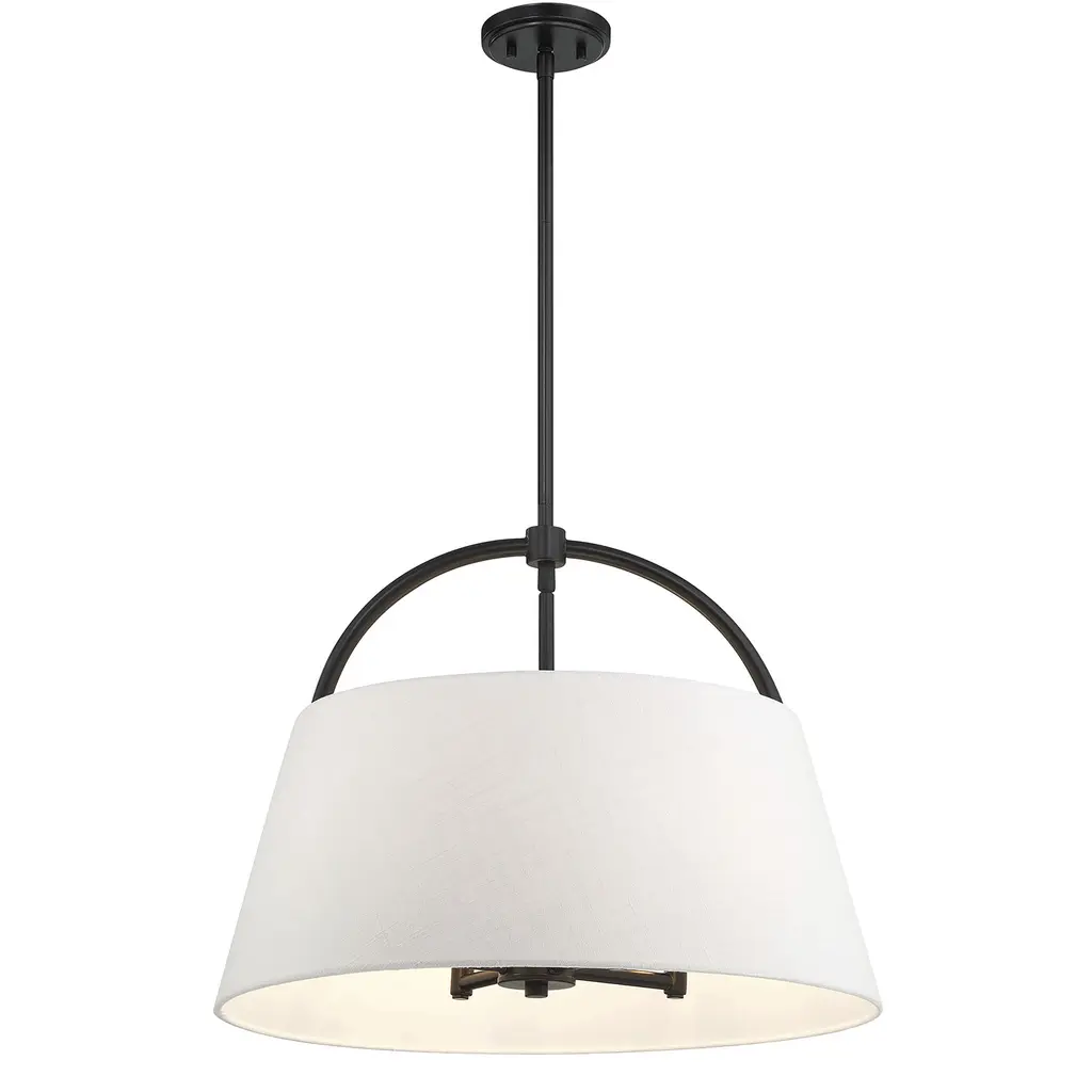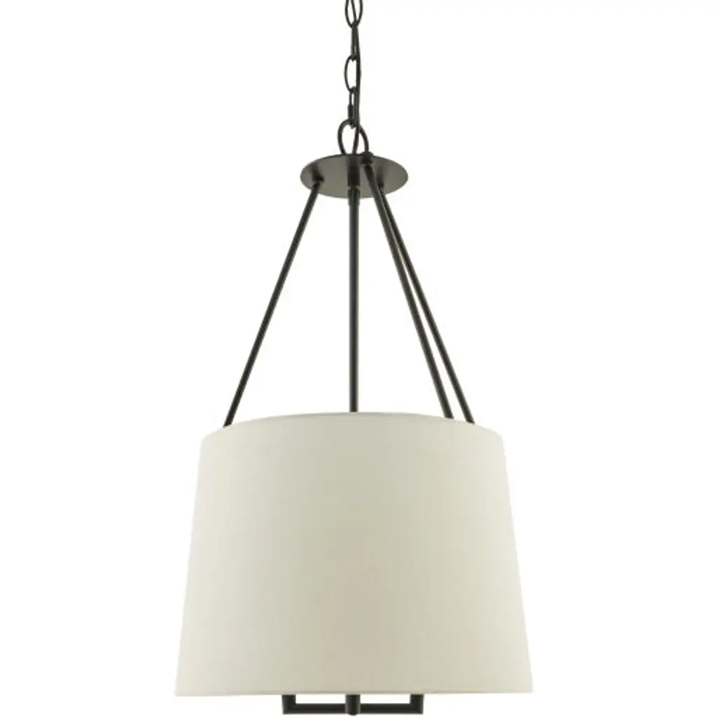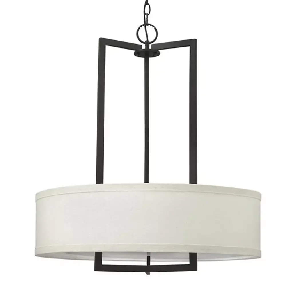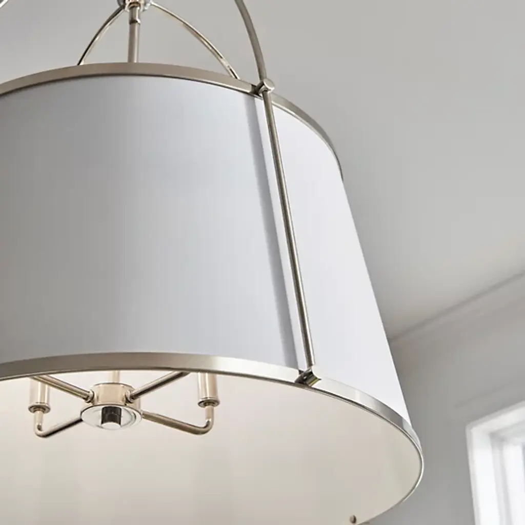 The Clarke Pendant by Hinkley Lighting accents spaces with a blend of classic, elegant lines and timeless details that are highlighted by a dynamic, two-tone finish. The traditional silhouette of a tapered, drum-shaped shade is elevated with gracefully arced rods that reach above this piece, intersecting at a spherical accent along the simple down rod supporting it. Minimalistic hardware accents add a thoughtful touch to this handsome pendant as it brings a lovely layer of light to spaces.