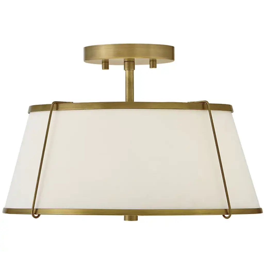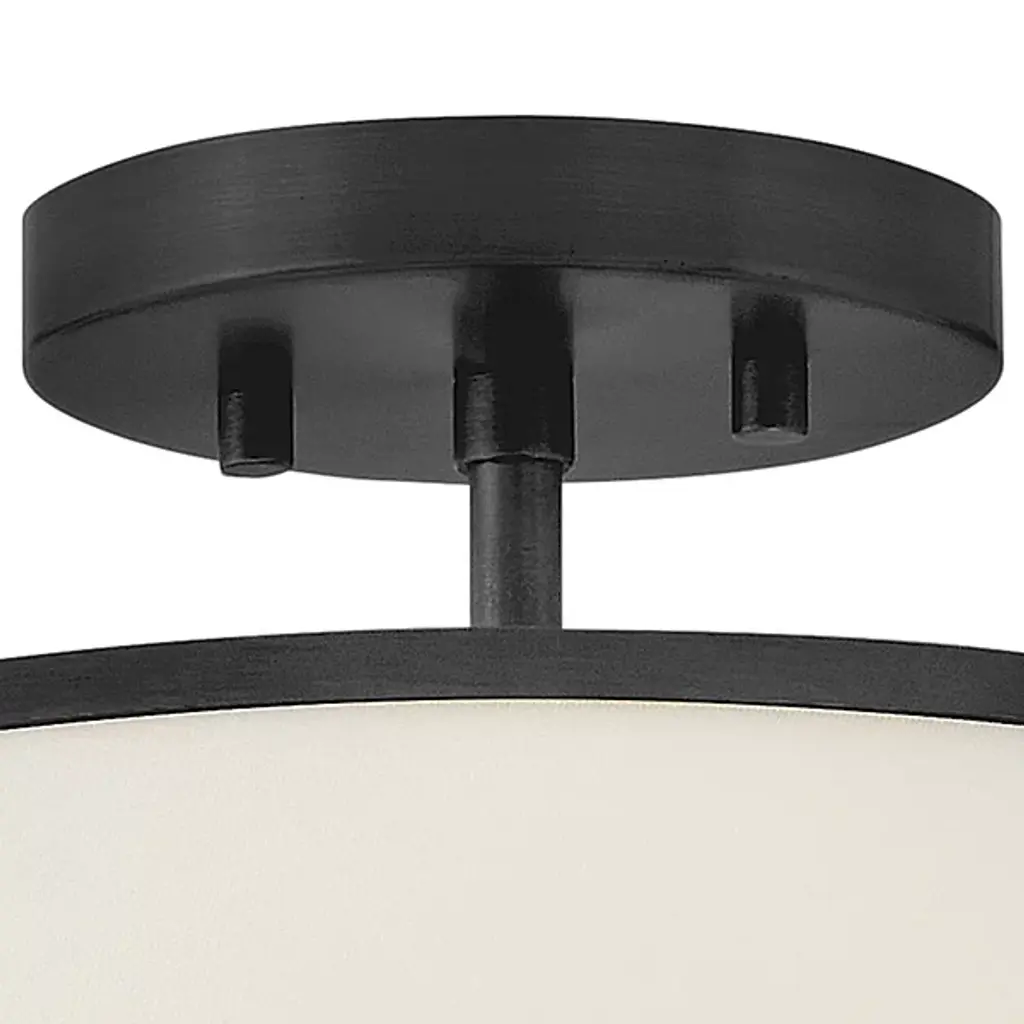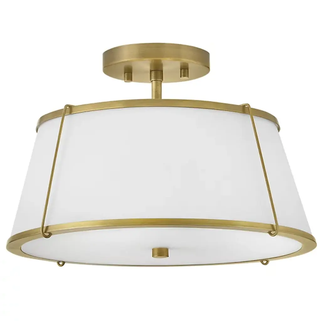 A regal throwback fashioned with elegant details. Add another layer of sophistication to your rooms with the Clarke Semi-Flushmount from Hinkley Lighting. It’s a clean transitional design marrying modern form with traditional accenting. The piece sits tight against the ceiling to enhance the room’s open feel. It draws your eye with the classic shine of bold steel. Hooking linear segments, a pair of sleek rings, and a dotting finial charm as fine accents. Together with a diffuser lens, the design’s drum shade conceals the bulbs inside for a glare-free experience. Turn it on and receive a soft yet spacious glow, underlined by a pleasant warmth.