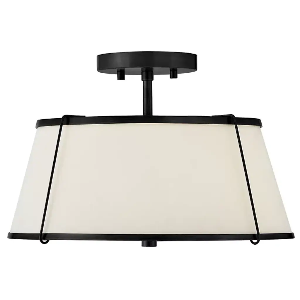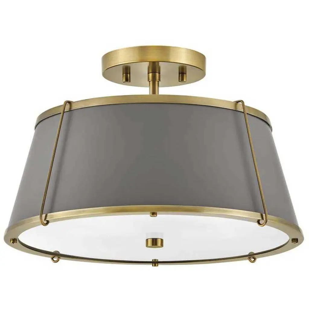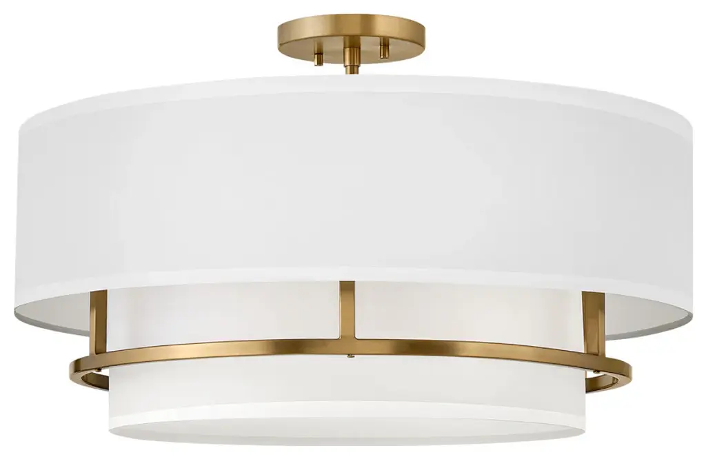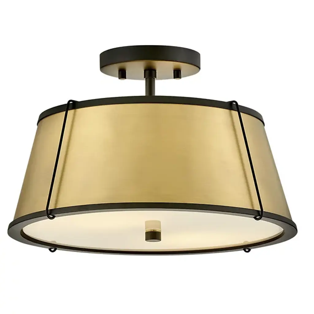 A regal throwback fashioned with elegant details. Add another layer of sophistication to your rooms with the Clarke Semi-Flushmount from Hinkley Lighting. It’s a clean transitional design marrying modern form with traditional accenting. The piece sits tight against the ceiling to enhance the room’s open feel. It draws your eye with the classic shine of bold steel. Hooking linear segments, a pair of sleek rings, and a dotting finial charm as fine accents. Together with a diffuser lens, the design’s drum shade conceals the bulbs inside for a glare-free experience. Turn it on and receive a soft yet spacious glow, underlined by a pleasant warmth.