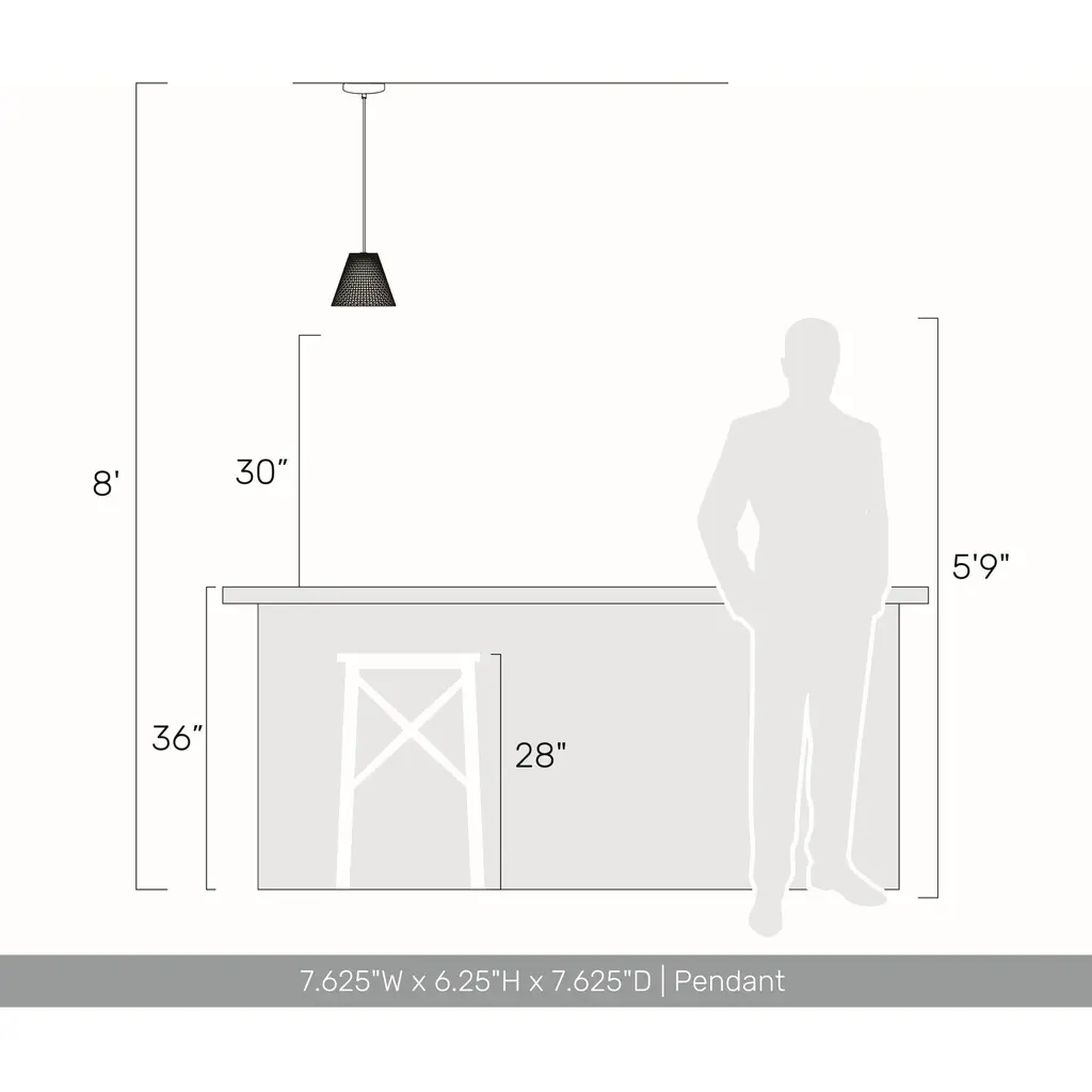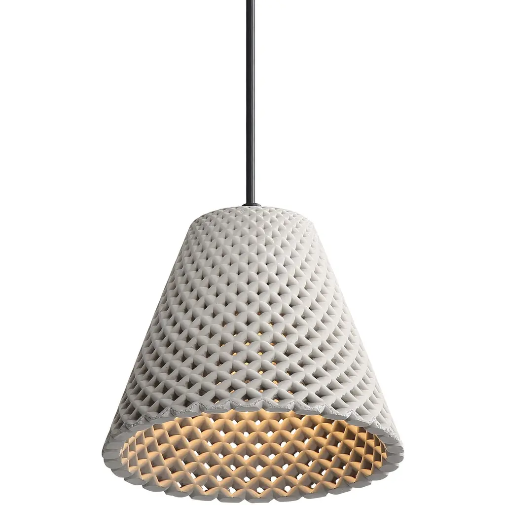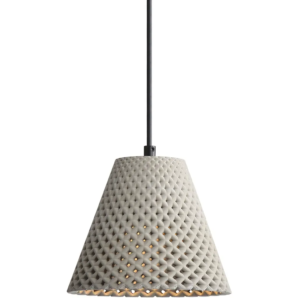 Bring modern elegance into your home with the Golden Lighting Clarus 8in Integrated LED Pendant. Featuring a gray cement shade and a matte black frame, it creates a welcoming atmosphere in any setting. The gray cement shade, meticulously crafted from genuine cast concrete, presents an architectural aesthetic with a raw, industrial texture that beautifully complements contemporary styles. The matte black finish is smooth and versatile, suited for various décor. This pendant is suitable for damp locations, making it ideal for entryways, bathrooms, or compact dining areas. With adjustable height (min: 8.125" - max: 126.25"), installation is simple even on sloped ceilings. Overall dimensions are 7.63"W x 6.25"H x 7.63"D, and it offers integrated LED technology with a luminous output of 350 lumens, featuring an adjustable color temperature setting (3000K, 4000K, 5000K). _Transform your space with this stylish pendant fixture._