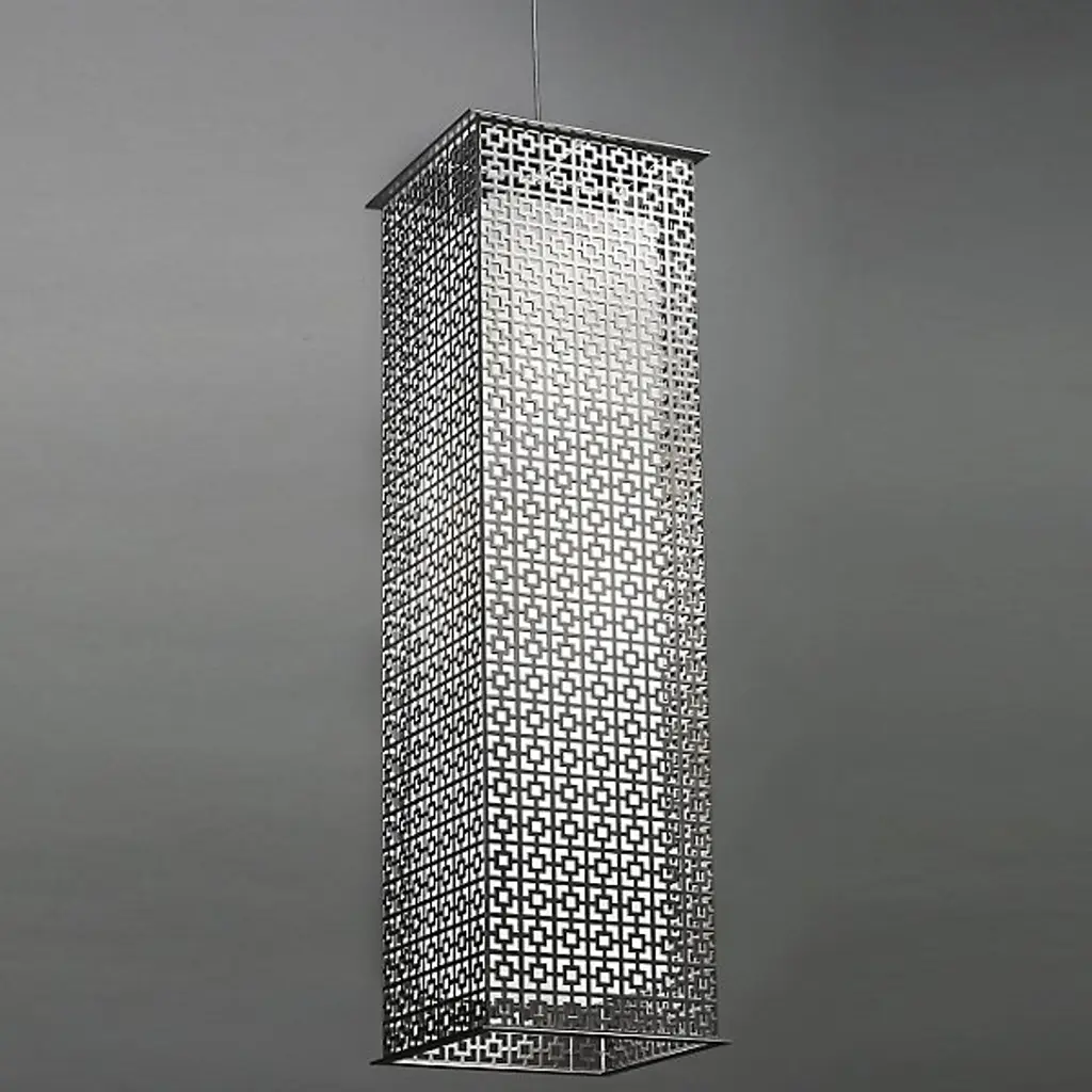The Ultralights Clarus Square Mini Pendant with Diffuser makes a bold statement while still being simple and to the point. Hard forged metal has been formed into an elongated rectangle, accented with an ornate all over cut-out design. The bulb is softly dispersed through the Opal Acrylic diffuser, the illumination being evenly spread as well as bouncing off the metallic finish with a sense of playfulness.