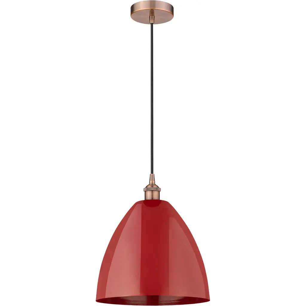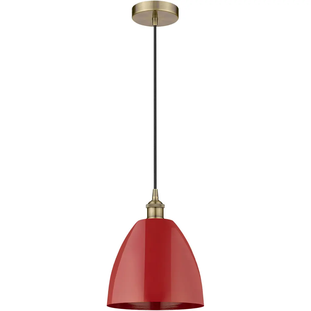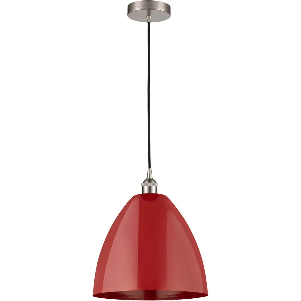 Classic 1 Light 9.6 Inch Chrome Large Pendant Ceiling Light In Matte Chrome, Gypsy Red