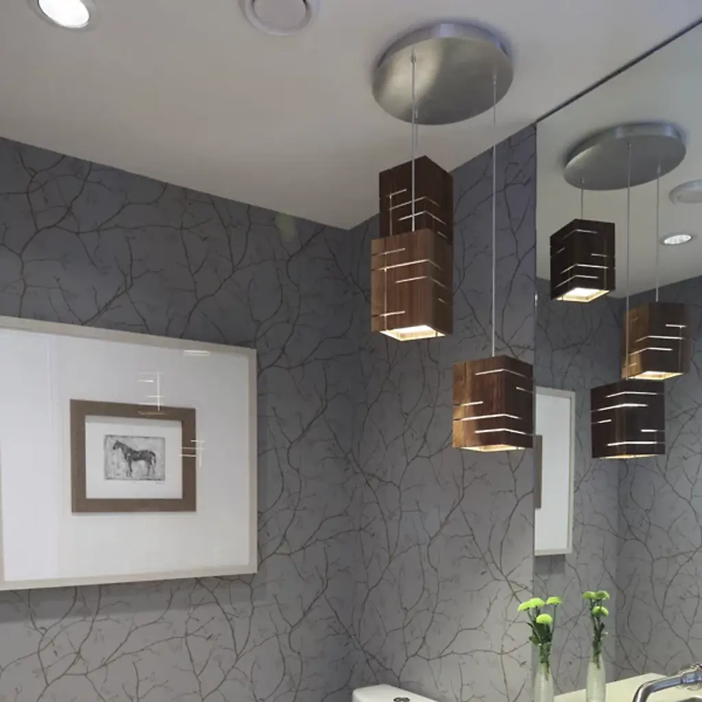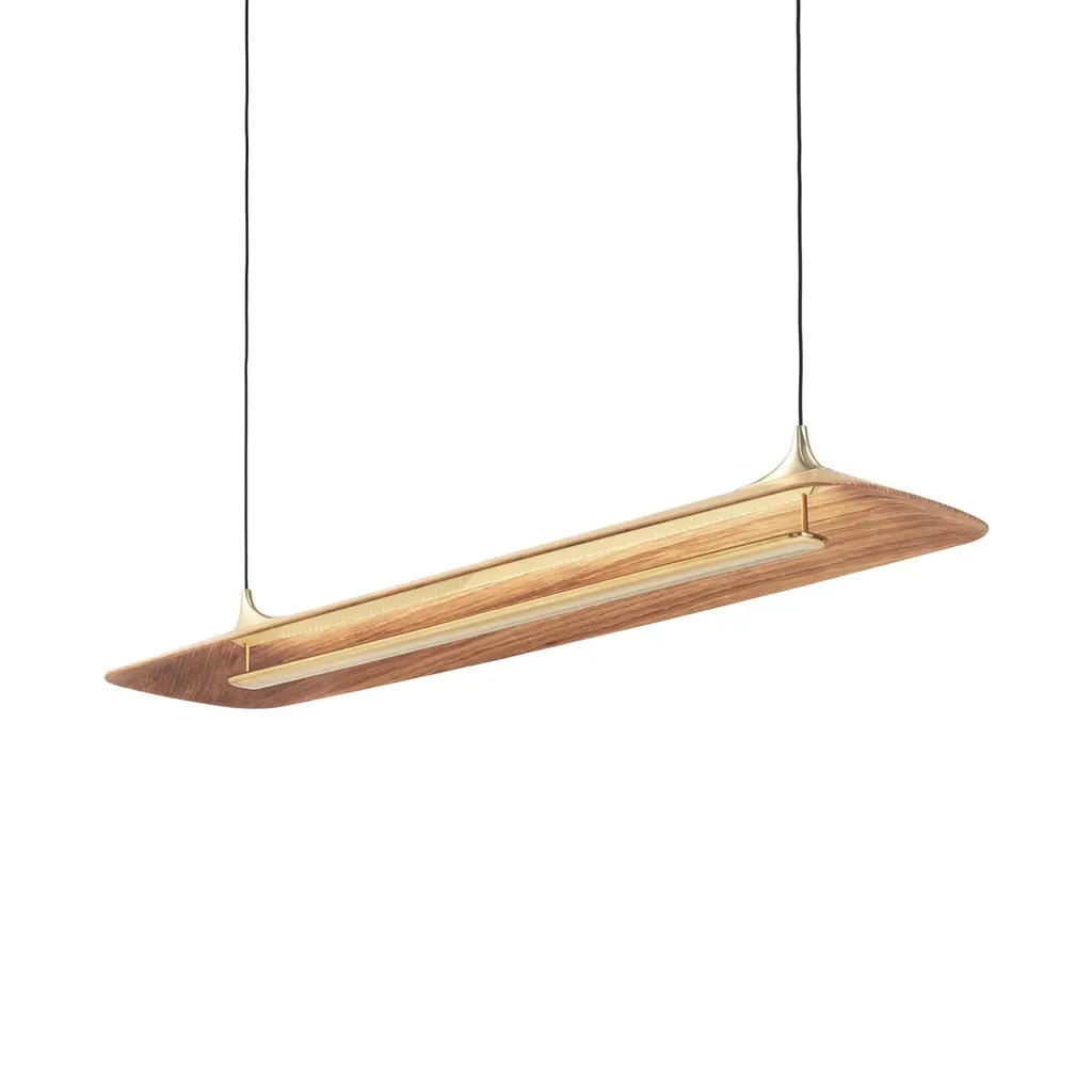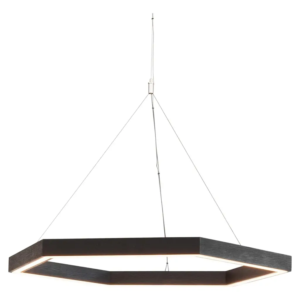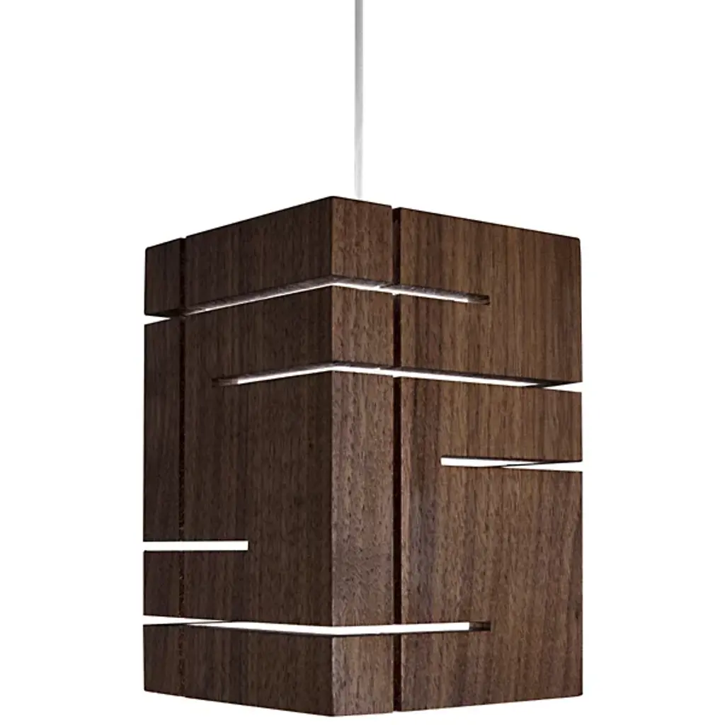 The Cerno Claudo LED Accent Pendant adds a distinctive architectural element to modern interiors. The otherwise solid wood shade diffuses light through slim, precisely cut slits. The glow cast by the inner LED array both provides flattering ambient light and offsets the deep tone and grain of the shade. Available in two finishes.